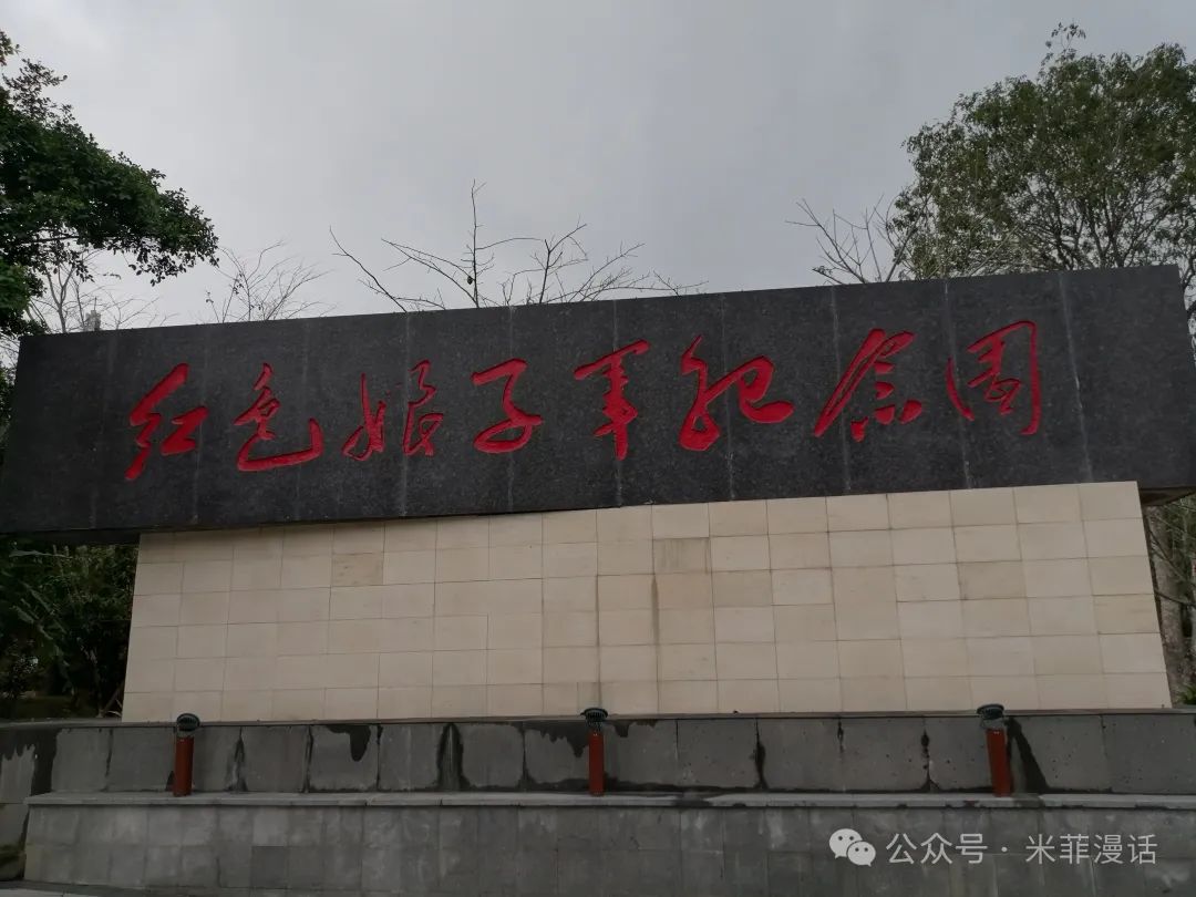 琼海前路边有指示牌显示左转1公里有红色娘子军纪念园。从小就听过吴琼花的故事,记得小时候家里年画曾贴过芭蕾舞剧《红色娘子军》的剧照,没想到有一天竟来来到了故事发生地。进入园区,首先看到吴琼花的雕像,飒爽英姿,刚毅俊美。很多来参观的人换上红军军装在雕塑前拍照。吴琼花雕塑后面是一座假山,假山上刻着鲜红的五角星,上书“娘子军”三个字,假山顶上是一只象征和平的鸽子。假山后是红色娘子军纪念馆,走到近前才发现闭馆(今天是周一)。出来这么多天,完全没有周几的概念了。没办法,在室外几处群雕前转转,离开纪念园去往琼海。