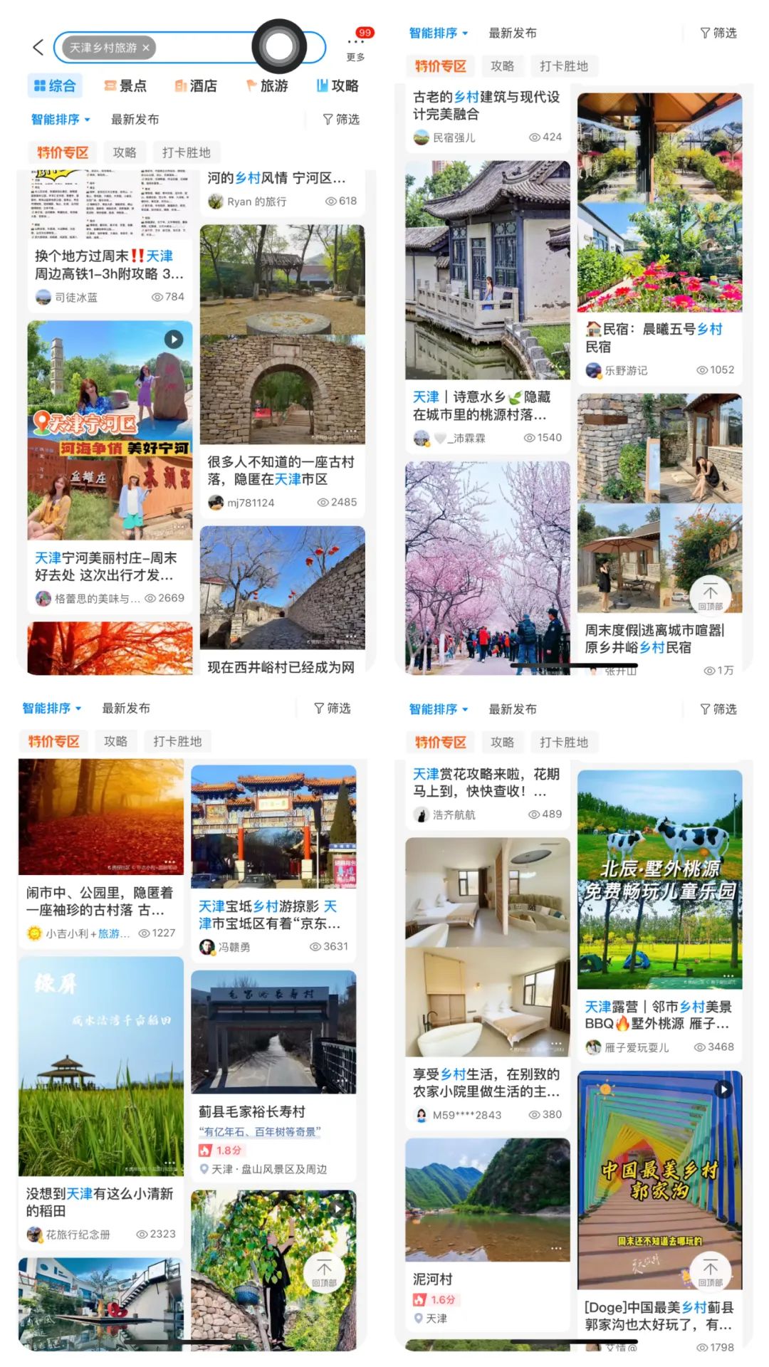 为了弄清楚这个问题,我在APP的搜索栏里直接输入了“乡村旅游”,这才有了些头脑里乡村旅游该有的样子。