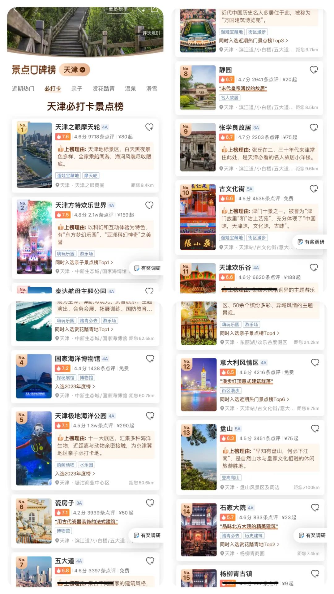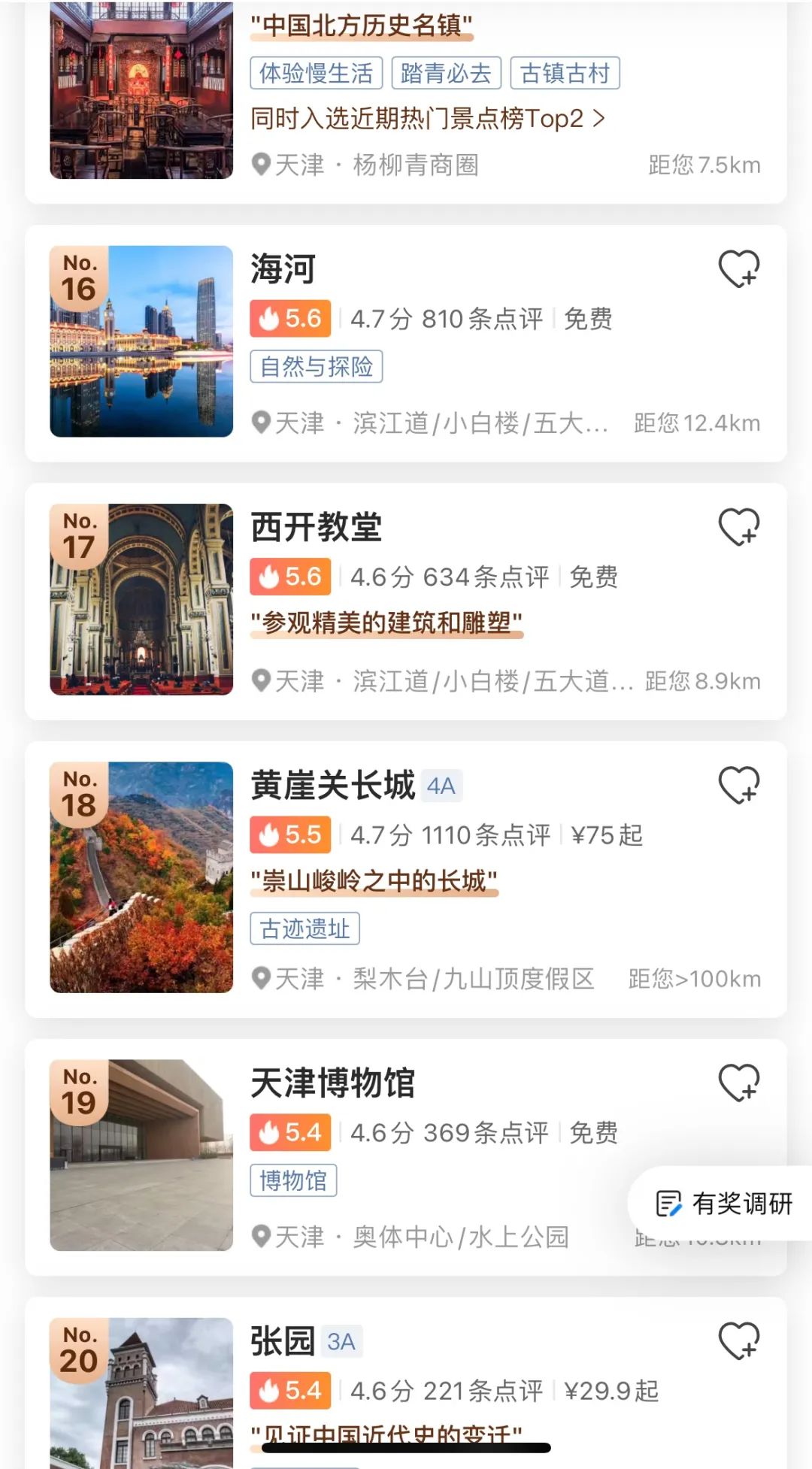 嘚,不搜不知道,一搜才发现,近代中国看天津果然名不虚传。然而这近代百年的历史,看的是风流人物轮番登场,看的是商埠口岸往来贸易,看的是宗教信仰更迭交替,看的是人情世故你来我往,看的是山中日月四季变幻。可这些都不是乡村的变迁,也不是乡亲们的生活。当然,你也可以说,前20名的榜单里,有9个景点坐落在郊区呢,妥妥的乡村旅游啊,但是我想说,乡村旅游之所以乡村,是需要有乡村要素的,而不仅仅是位于乡村。在乡村的地盘上盖一座SHOPPINGMALL,而且与周边的乡村人文毫无瓜葛,这可以算是乡村旅游的内容吗?说实话,我有点迷茫了。