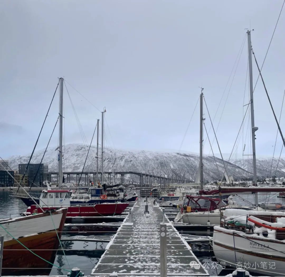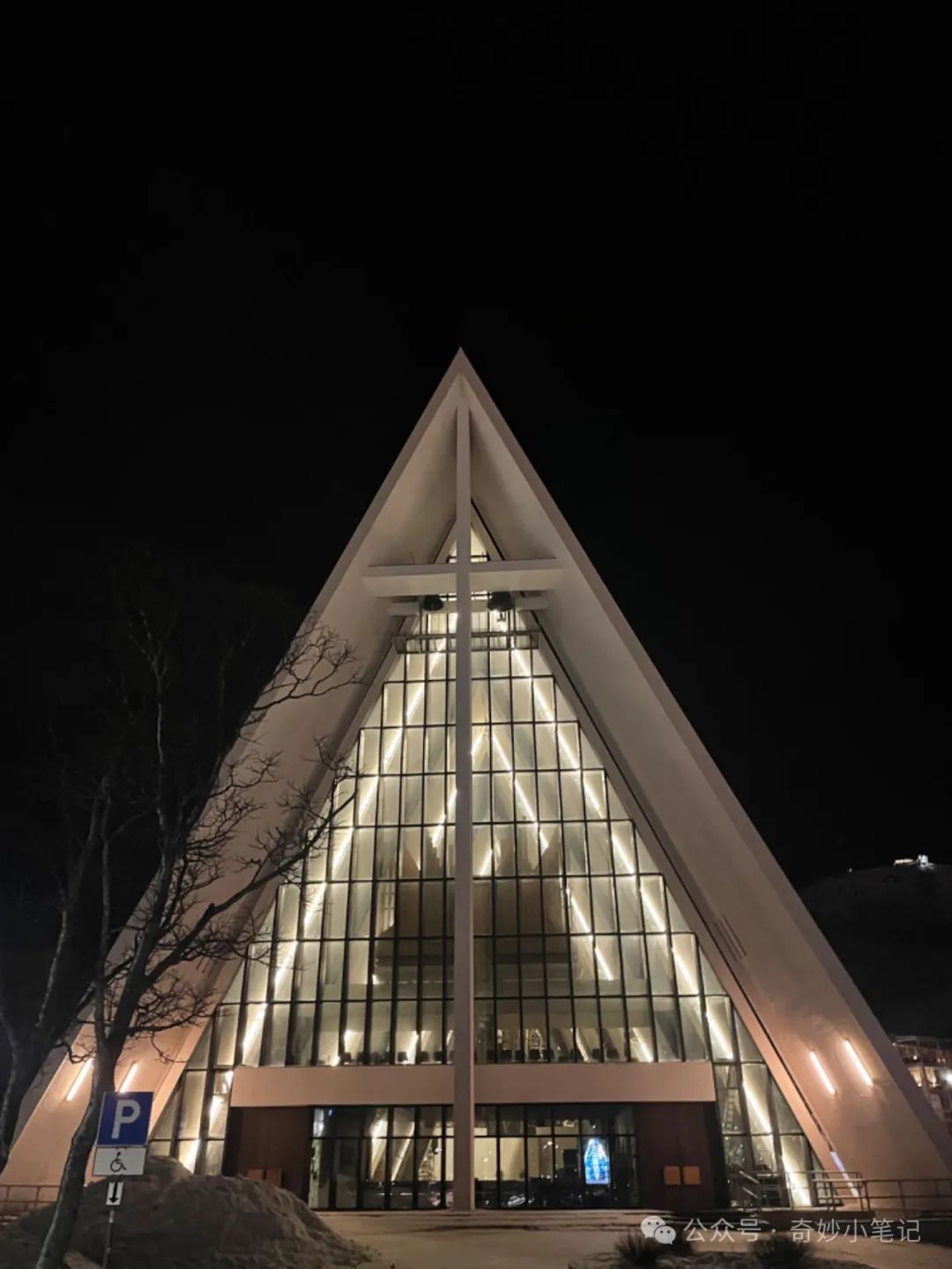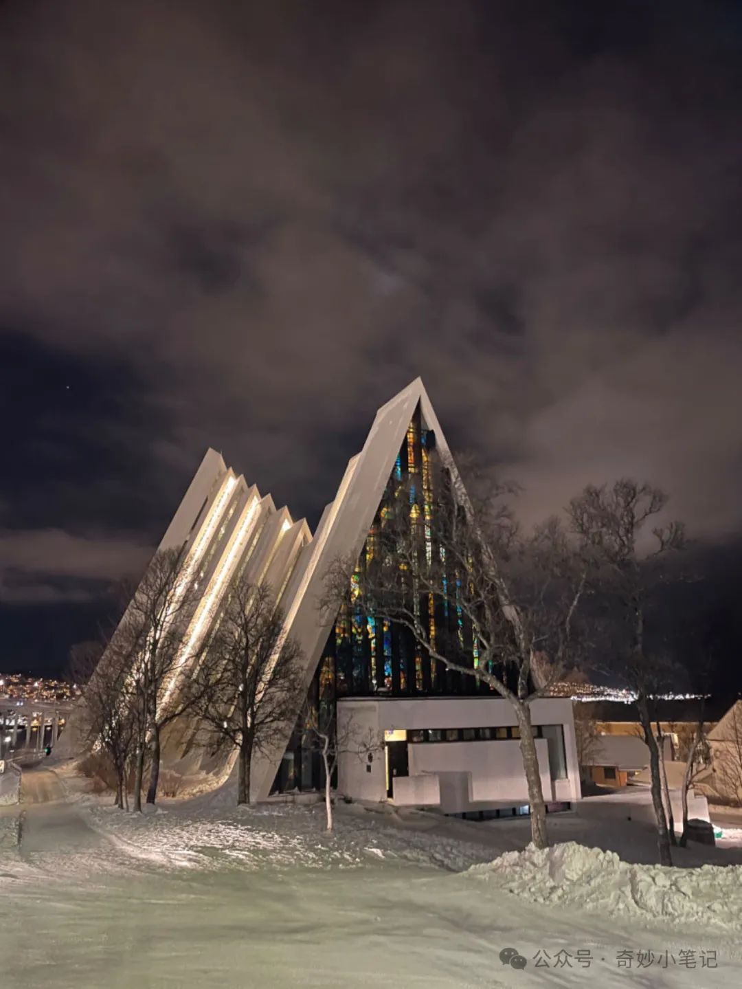 过了近40分钟才坐缆车下山,我们又走到世界最北(除开俄罗斯)的北极大教堂打卡.结果有音乐会不能进,特罗姆瑟的教堂这是anti我们吗?来都来了,合个影到此一游吧.离开去Bus站的路上还当了回雷锋,扶起了摔倒的东北阿姨.说起来,罗瓦涅米的雪地一点不滑,特罗姆瑟就滑得不敢快步走,还好我们备了冰爪才保住狗命.