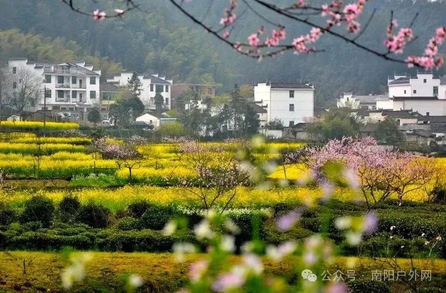 江西婺源的油菜花就是这样一种意韵,江西婺源被誉为"中国最美的乡村" ,余邵诗云:“油菜花开满地黄,丛间蝶舞蜜蜂忙;清风吹拂金波涌,飘溢醉人浓郁香”。花粉中含有丰富的花蜜,常引来彩蝶与蜜蜂飞舞于花间,由此平添了乡间田园缤纷的景致。三月中下旬,棵棵粉红的桃花、洁白的梨花点缀在漫山遍野金黄色的油菜花中,掩映着白墙灰瓦的徽派建筑,使得每一个逃离纷繁城市的人都能找到归宿。