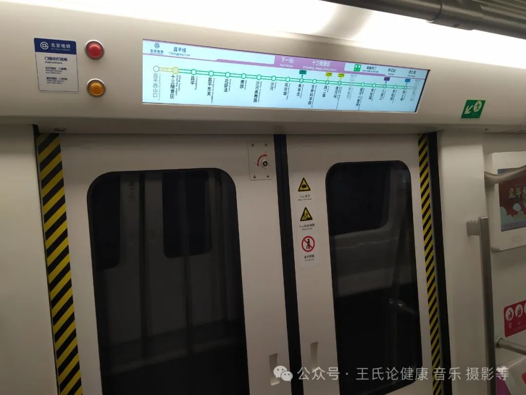 进入地铁站,笔者用最快速度直接登上地铁昌平线列车,并拍摄了车内的线路图及列车厂牌。