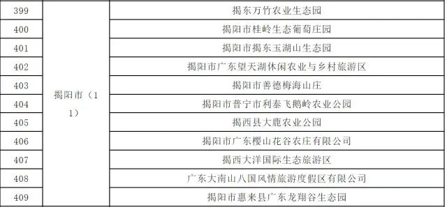您现在的位置是:首页 > 国内旅游目的推荐 > 正文 国内旅游目的推荐 揭阳普宁入选省级休闲农业与乡村旅游重点县名单!还有11个示范点监测合格 admin2024年03月13日 08:32:03国内旅游目的推荐142 近日,《关于2023年度省级休闲农业与乡村旅游示范单位候选名单和前十批示范点监测合格名单》公示。名单显示,经主体申报、县市审核、省组织评审,确定杜阮镇等56个2023年度省级休闲农业与乡村旅游示范单位,广州市花都区宝桑园蚕桑特色休闲农业示范基地等433个前十批省级休闲农业与乡村旅游示范点通过监测,继续保留“广东省休闲农业与乡村旅游示范点”称号。其中,揭阳市普宁市入选2023年度省级休闲农业与乡村旅游重点县名单,揭东万竹农业生态园、揭阳市普宁市利泰飞鹅岭农业公园等11个省级休闲农业与乡村旅游示范点监测合格。名单如下省级休闲农业与乡村旅游示范单位:省级休闲农业与乡村旅游示范点监测合格名单:来源:南方+ 转载请说明来源于"旅荐网",部分内容转载自网络,如有侵权请联系qlwl@foxmail.com删除 本文地址:https://www.15386.cn/post/22011.html 上一篇 南方人从东北旅游回来了,告诉你一个真实的东北,别相信网上的了 下一篇 福吉融合料理丨舌尖去旅行,把日料锁进味蕾里 相关文章 旅游策划中的体验设计:让游客有参与感、有获得感 2026年3月18日海南旅行机构信誉档案 2026年安心出游完整名录 桂林四天三晚自由行攻略 隽健旅行vlog|����槟城怎么玩?跟着我 一个人,云南旅行26天攻略(详细版) 马蜂窝发布2026AI+旅游报告:AI搜健康卫士出行包,解锁春季无菌 大同一日游攻略 | 云冈石窟、应县木塔、悬空寺一站式游玩 5 座免费宝藏古镇旅行指南!人少景美不花钱 2-3月旅游攻略.春天就去这些地方吧 时间旅行指南(2):什么是第一本真正意义上的时间旅行科幻作品? 发表评论 取消回复 评论列表 这篇文章还没有收到评论,赶紧来抢沙发吧~