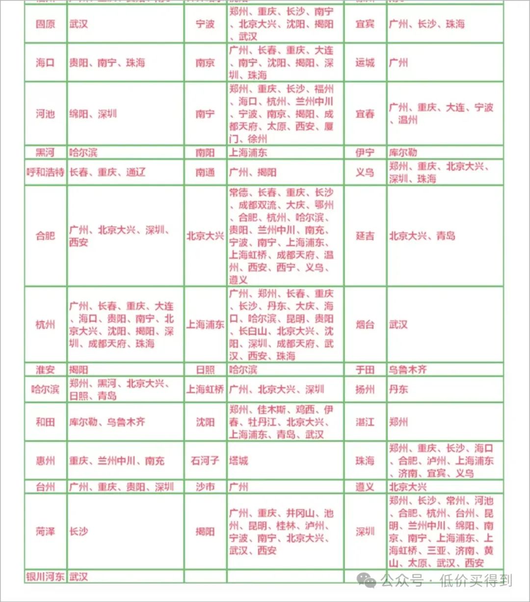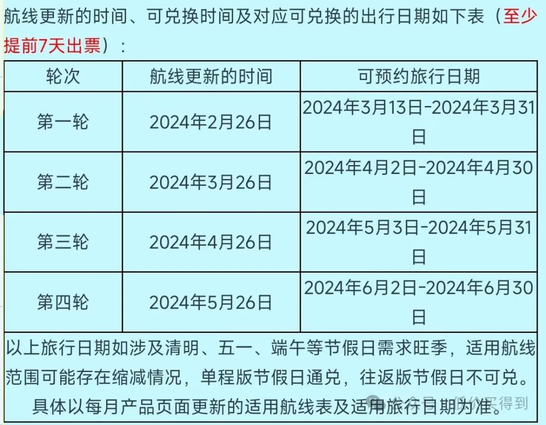 每轮更新航线,对应航班适用日期如下,最晚可到6月30日。