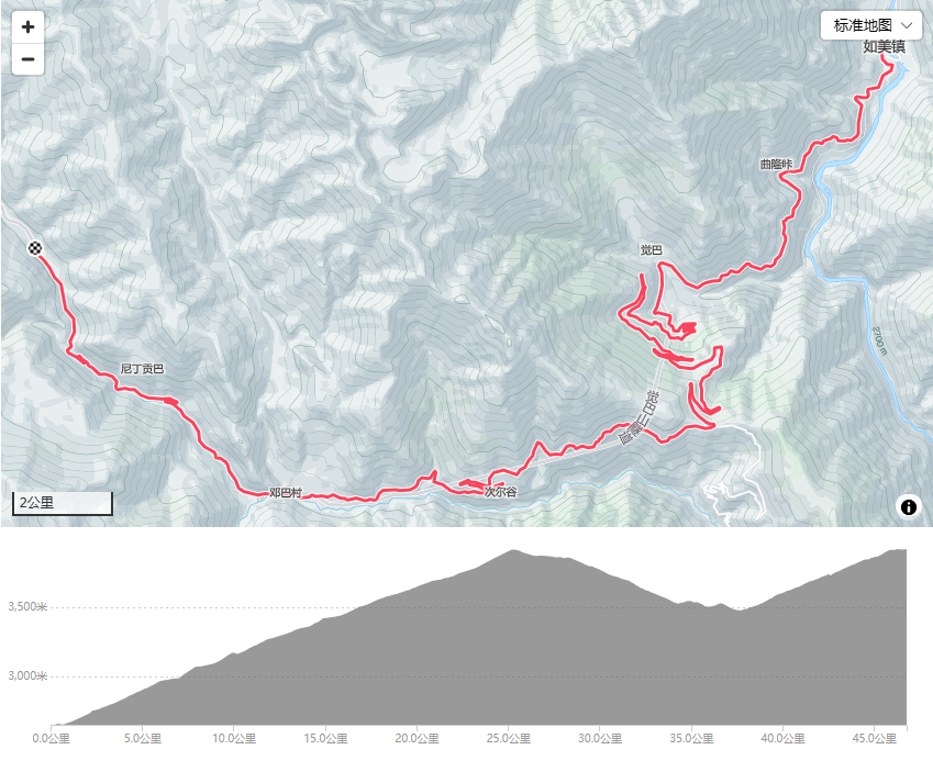 途径:如美-觉巴村-觉巴山(海拔3911)-东达山旅游服务中心(海拔4046)