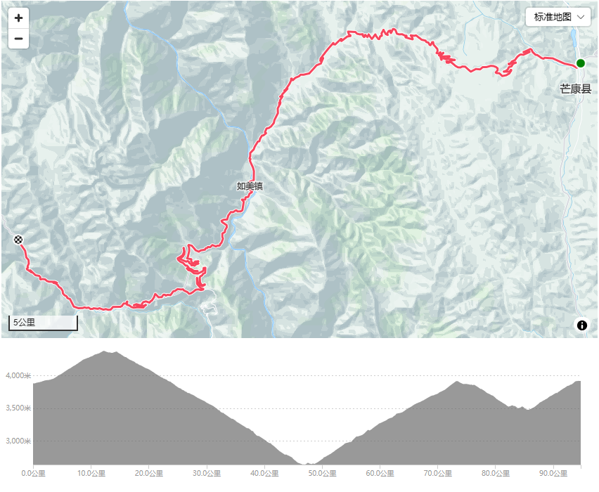 一天总行程94km,爬升接近2200m,海拔图如下↓