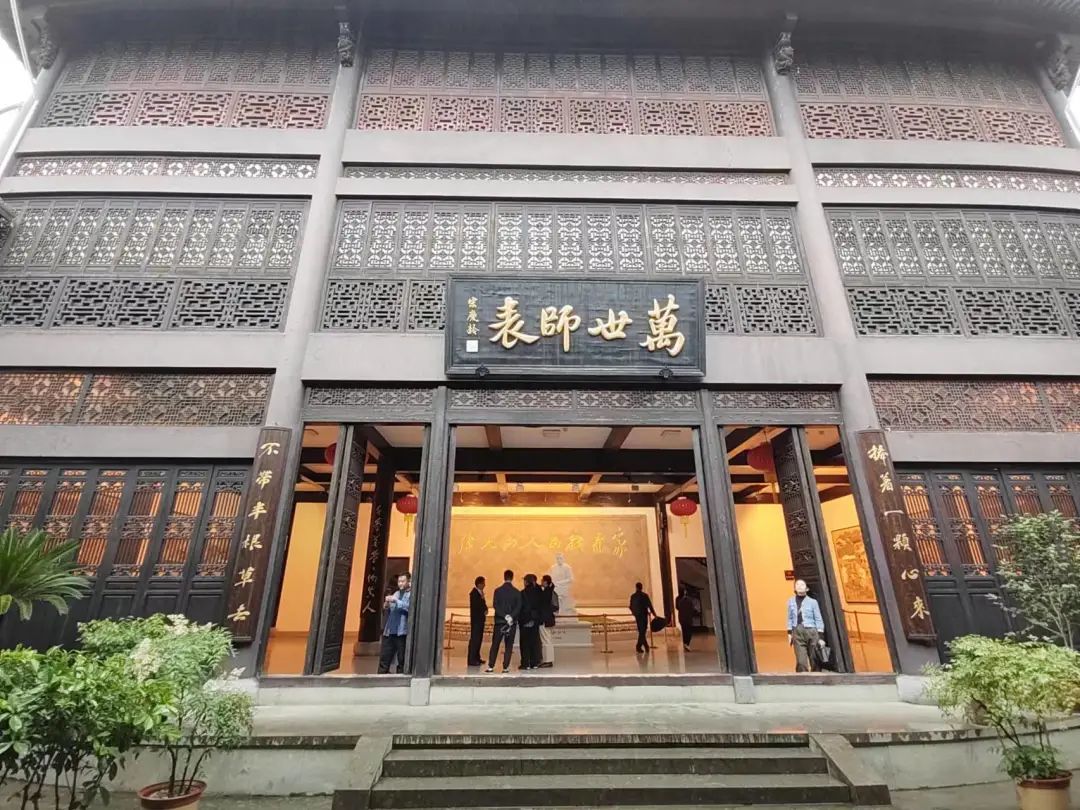 进门首先映入眼帘的是一座汉白玉的陶行知雕像,展现了他倾情教育,手不释卷,爱满天下的风范,雕像背后是一代领袖毛泽东题写的“伟大的人民教育家”八个金色大字。