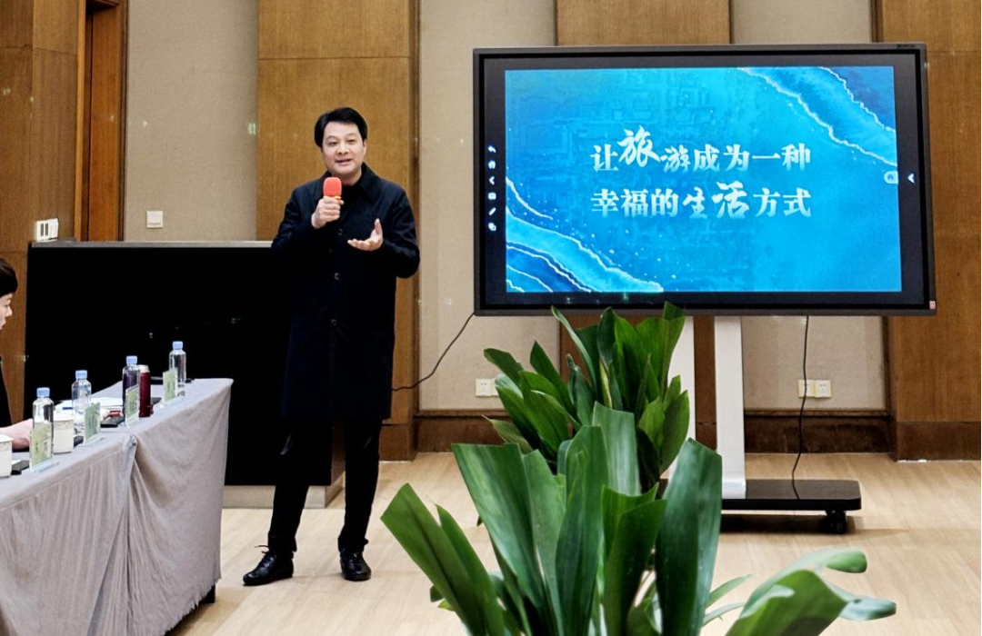市旅游协会常务副会长兼秘书长肖洁在讲话中表示,自2023年春节文旅复苏以来,各位酒店负责人通过创新思路、加大投入、提升服务等方式为我市文旅产业的复苏和发展注入了强劲的动力,做出了积极的贡献,受王玉新会长委托代表市旅游协会向大家致以衷心感谢和崇高敬意。同时肖会长围绕中国文旅发展的大势与趋势、扬州文旅产业的优势与弱势以及文旅高质量发展的布局与破局三个角度,简要分析了当前的文旅形势并提出了建议策略。最后,肖会长呼吁,旺季即将到来,这是我们展现饭店行业风采、提升服务品质的关键时期,希望大家能够保持更加饱满的工作热情,以精益求精的态度,为每一位游客提供细致入微、周到贴心的服务。