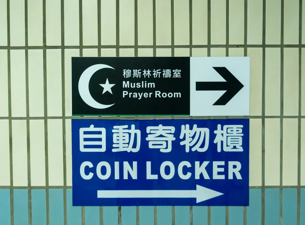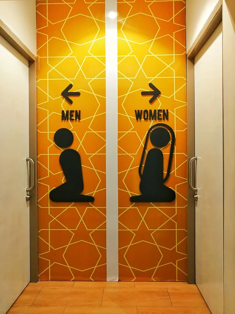 在购物中心等公共场所,穆斯林祈祷室的指示牌通常是下面这些样子的标志,注意看清标志,不要随意进入祈祷室,打扰他人。
