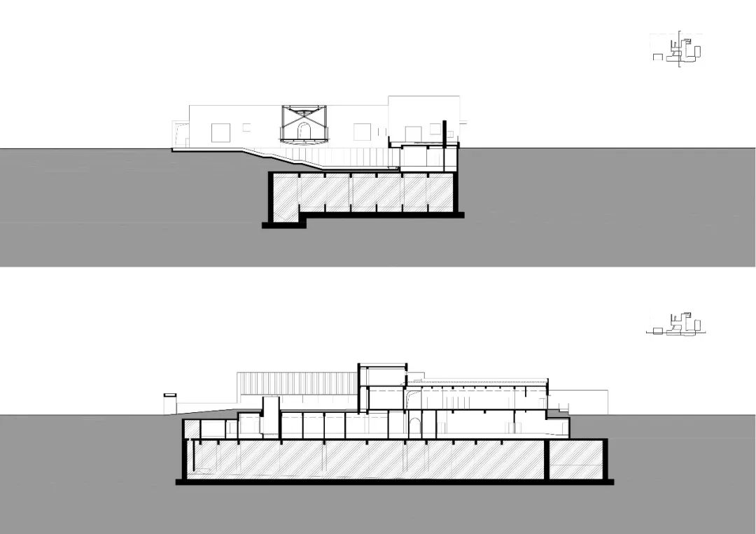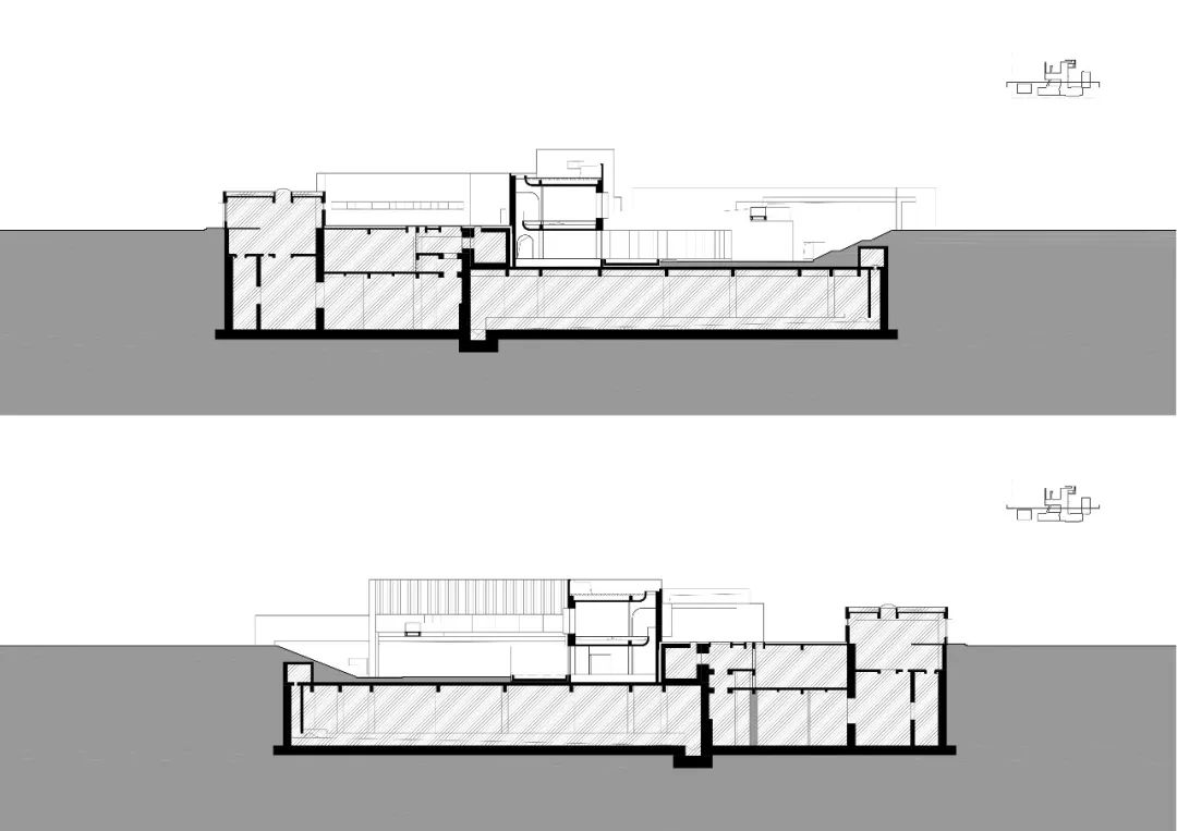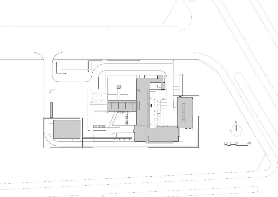 值得一提的是项目与城市泵站和配电站结合在一起,新的结构需要建立在原有结构之上,受到已有设施的制约。因为泵站深处地下二层,为了减少土方回填,设计师从地下一层开始规划建筑功能,因地制宜,巧妙利用地形,设置了下沉庭院,并通过两个方向的绿坡与地面层相连,既为甲方节省了造价,亦体现出了人工建造对自然场地的尊重与利用。