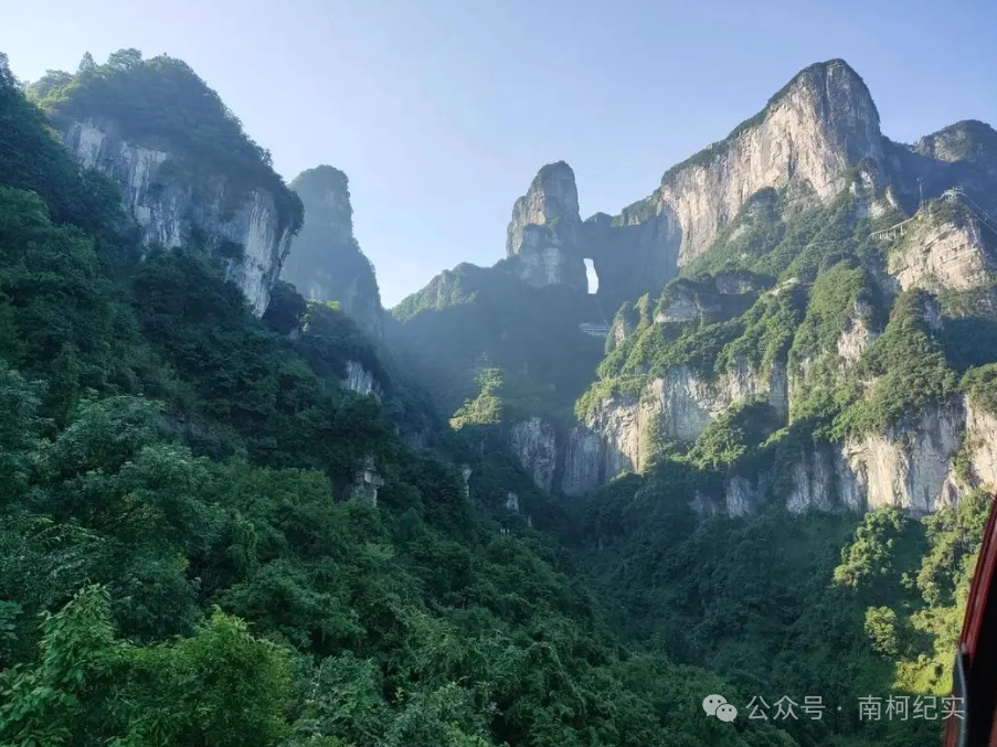 我们来到了张家界市的天门山,这是武陵山脉的一部分,以其壮丽的自然景观和悠久的文化底蕴而著名。登上天门山,眺望群山之巅,云雾缭绕,宛如仙境一般。走进天门洞,身临其境感受那种身临其境感,身临其境感受着大自然的鬼斧神工,感叹自然之奇妙。
