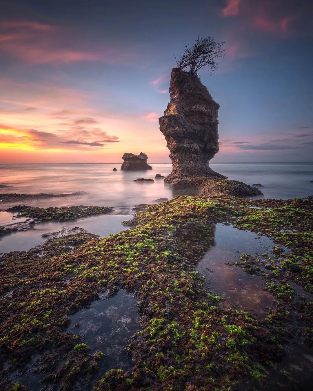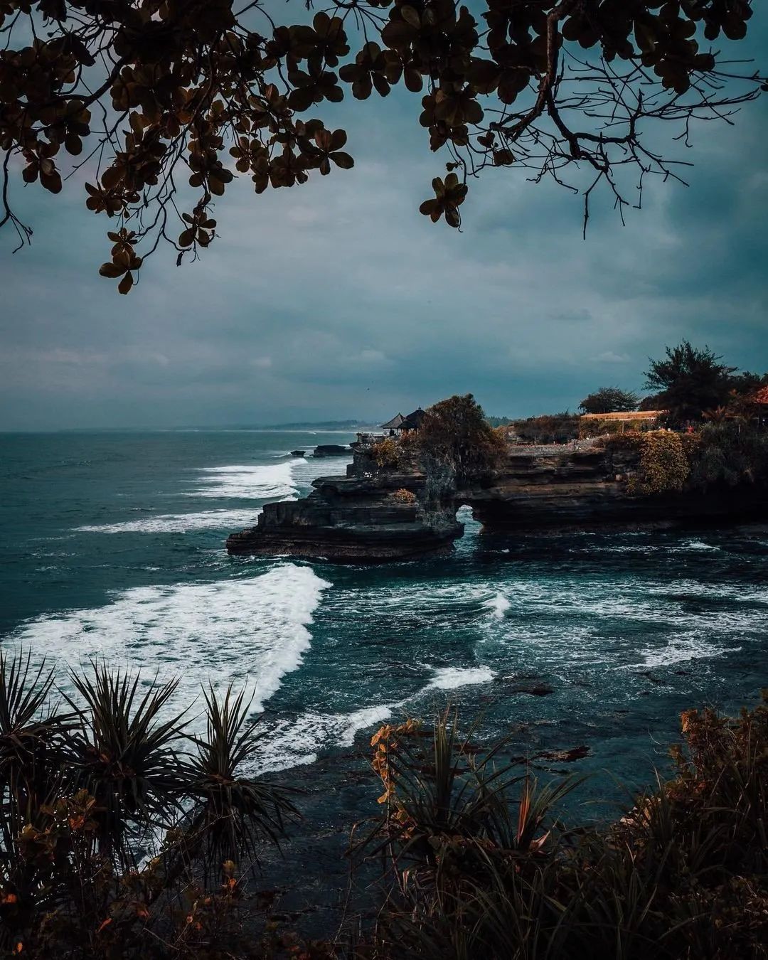 海神庙(Tanah Lot),巴厘岛最重要的地标之一,也是最受欢迎的景点之一。海神庙是座古老的印度教圣地,它坐落在海浪之中,以其独特的离岸位置和令人惊叹的日落美景而闻名。