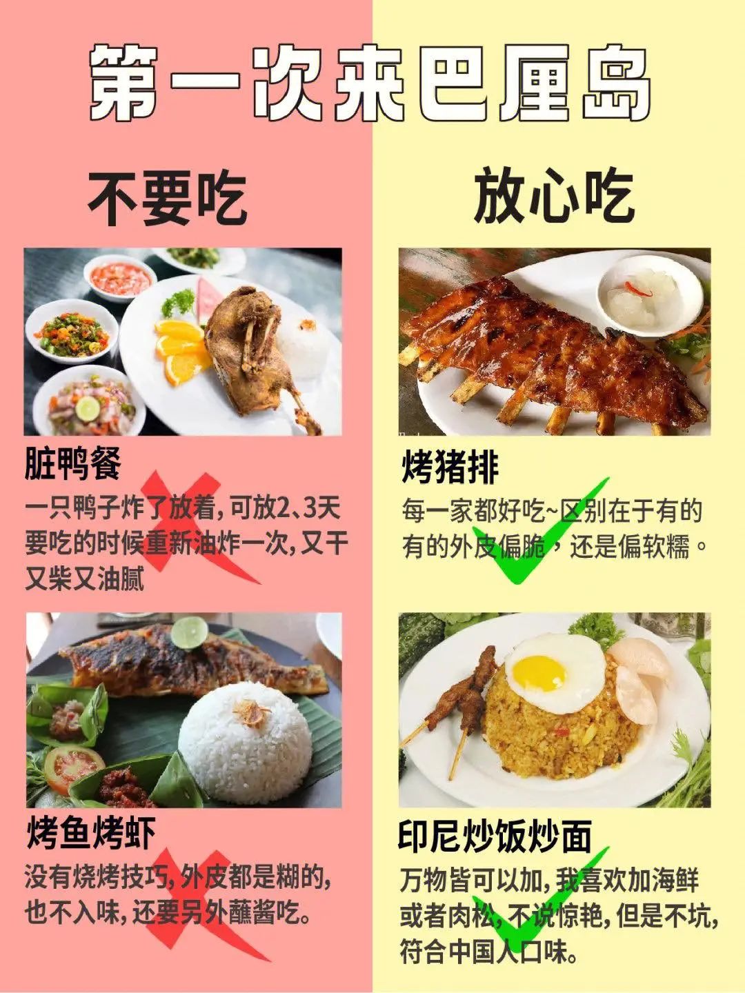 巴厘岛特色:bebe bengi(脏鸭餐)、Naughty Nuri’s Warung(烤猪排)、Warung Mak Beng(炸海鱼+咖喱鱼头汤)