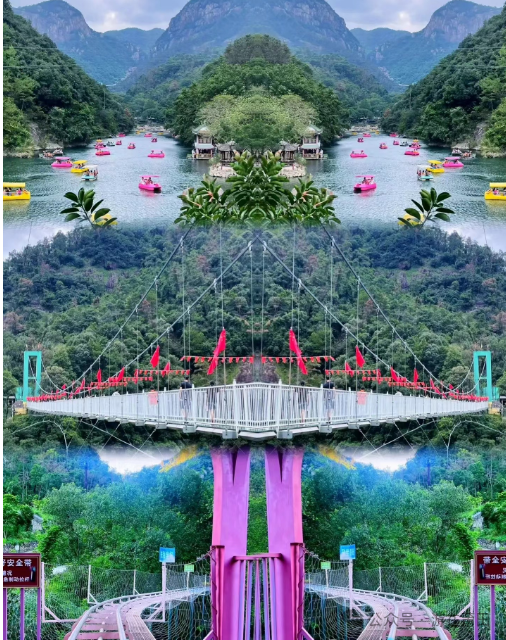 中午前往指定餐厅用餐。自费体验福建省最刺激、垂直悬崖峭壁-高空攀岩-滑索、玻璃水滑道景区新增全息【7D玻璃天桥】自理。