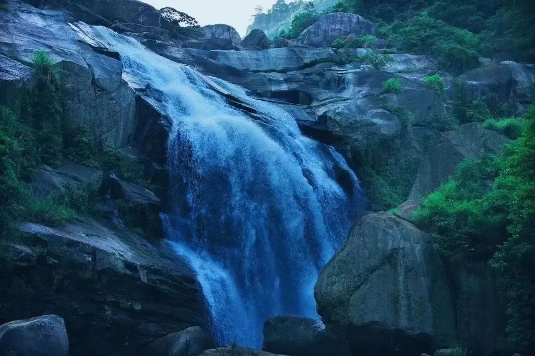 九龙潭瀑布溪水欢快地奔腾,只要有些落差,溪流便跌宕起伏,卷起白色泡沫如雪般洁净,如玉般莹透。一路上低吟浅唱,或长啸轰鸣,显示速度之美,力量之美。天青色烟雨天,别是一番韵味……