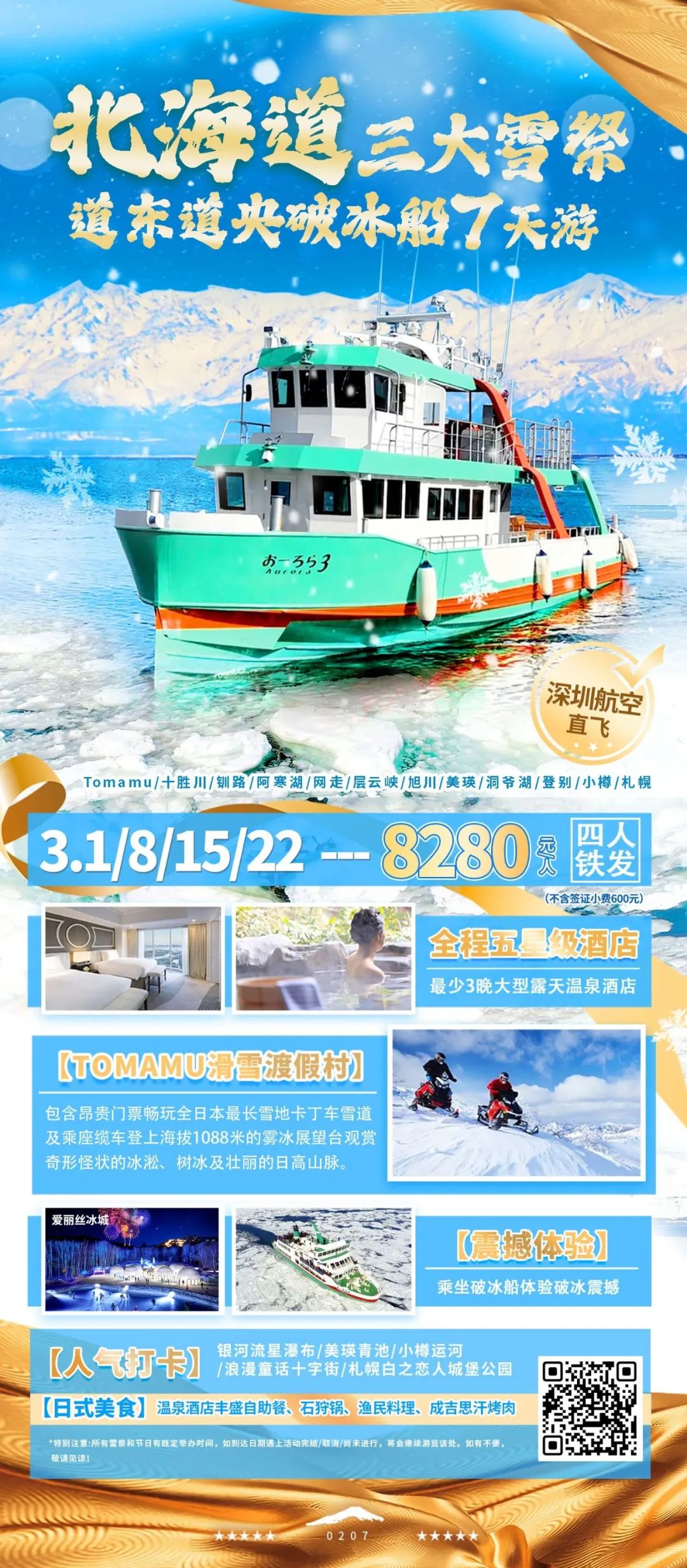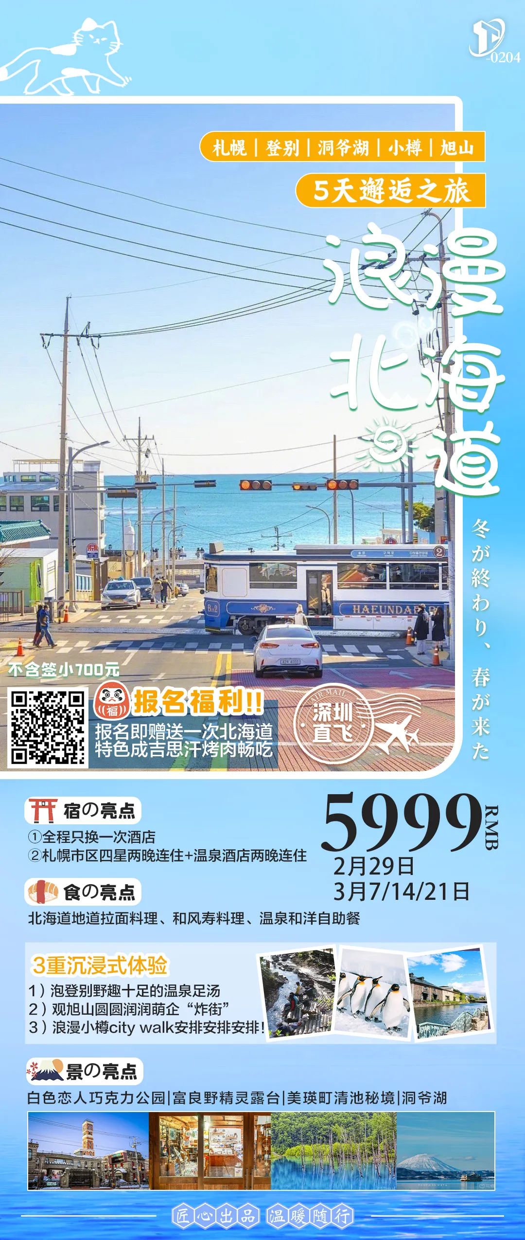 您现在的位置是:首页 > 国外旅游目的地推荐 > 正文 国外旅游目的地推荐 【出境游】日韩3-4月线路/自由行 admin2024年03月13日 15:28:53国外旅游目的地推荐336 日本是一个风景秀丽、文化多样、魅力无穷的国家,每年吸引着无数的游客前往。(03.12版)详情请致电:13823091190 庄小姐13902865290 郑小姐韩国不管是为了打卡“韩剧取景地”还是为了找一家出片的“咖啡店”亦或者静静地享受美丽大海只要来到韩国!就会有出不完的片~吸引着来自世界各地的旅行者详情请致电:13823091190 庄小姐13902865290 郑小姐以上图片及供参考来源于: 去韩网、网络,如有侵权请联系删除 转载请说明来源于"旅荐网",部分内容转载自网络,如有侵权请联系qlwl@foxmail.com删除 本文地址:https://www.15386.cn/post/22183.html 上一篇 申请出境游旅行社许可怎么办理及相关流程 下一篇 【滨州鸿泰丰田】格瑞维亚-出游就得讲究全家齐欢乐 相关文章 申请出境游旅行社许可怎么办理及相关流程 泰国出境游!真纯玩,无自费!欢乐之都 萨瓦迪卡,曼芭莎、普吉斯米兰、清迈清莱! 出境游 出境游重启10日:泰国人挤人,欧洲还在等 出境游记得用银联移动支付!还能领在线娱乐好礼 北京国际旅行社转让带出境游业务资质! 出境游合集 3月第2期 出境游海岛线计划已出 “外事为民 守护安全”出境游安全提醒 高德、百度地图能查看的都是国内的街道,没有卫星地图 发表评论 取消回复 评论列表 这篇文章还没有收到评论,赶紧来抢沙发吧~