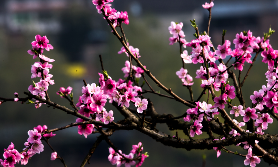 桃花美艳,由深至浅的粉红让人移不开眼;桃花质朴,不在高出盛开,让人轻易就能触碰到。