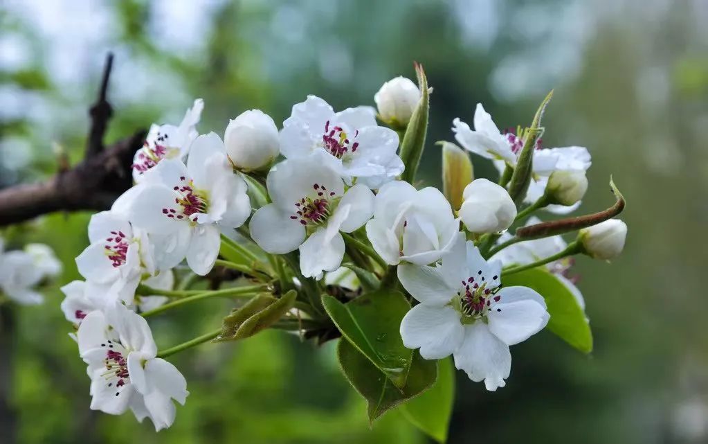雨露过后,雪白的花瓣变得晶莹透亮,微光温柔地倾落,纯白的梨花就静静地释放着清香。