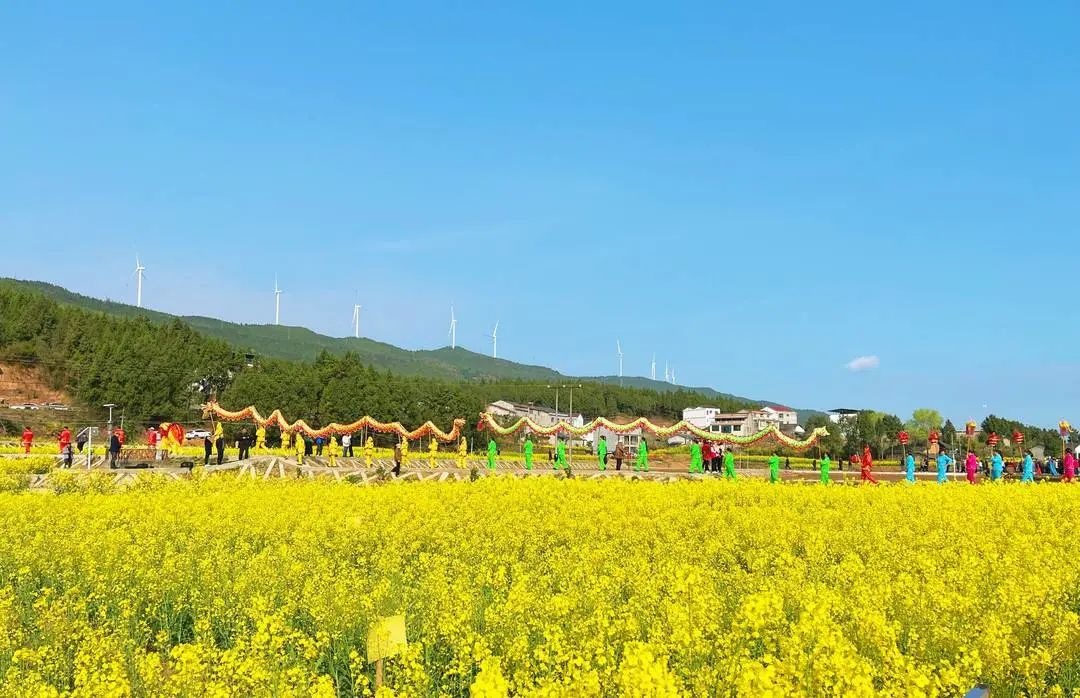 春风一遍遍掀起金色的海浪,空气里弥漫着油菜花的清新,精彩的文艺表演和非遗演出也为这场盛会助兴。