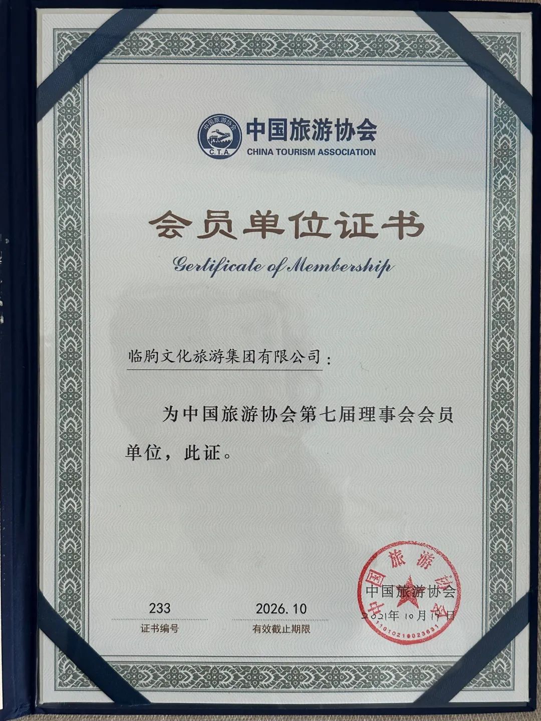 喜讯!临朐文旅集团荣获中国旅游协会会员单位