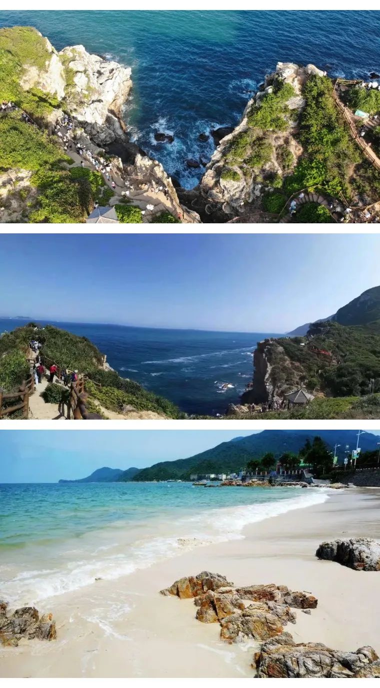 沙滩、岛屿、礁石、海蚀岩、洞、桥、柱等海积海蚀地貌发育齐全,无敌的海景!