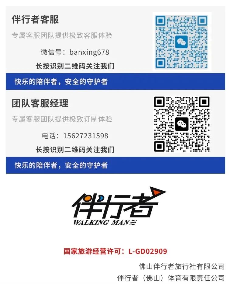 注意:遵规守时是户外良好作风,提早五至十分钟利己又利人;活动行程仅为根据以往活动时间预计,当天的交通状况及队伍的行进速度快慢会造成实际时间上有出入;如果在活动中遇到不可抗力的突发情况,领队有权在不影响活动体验的原则下,根据实际情况调整行程,请大家理解配合。