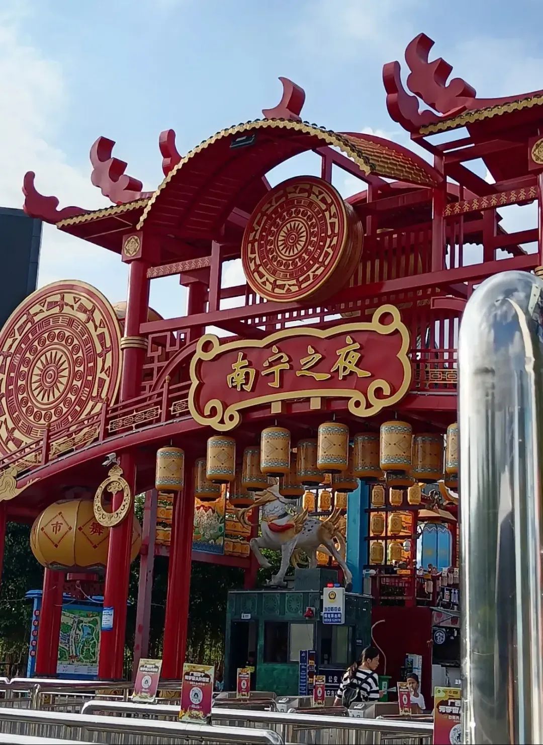 · 晚上去了南宁之夜,本来想去邕江夜游的,但是有点远,船票也没有买上合适的时间,所以最好提前买好船票。南宁之夜也很美,一条人工打造的壮乡特色的街道,灯光炫丽,街上许多造型,也很吸引小朋友。