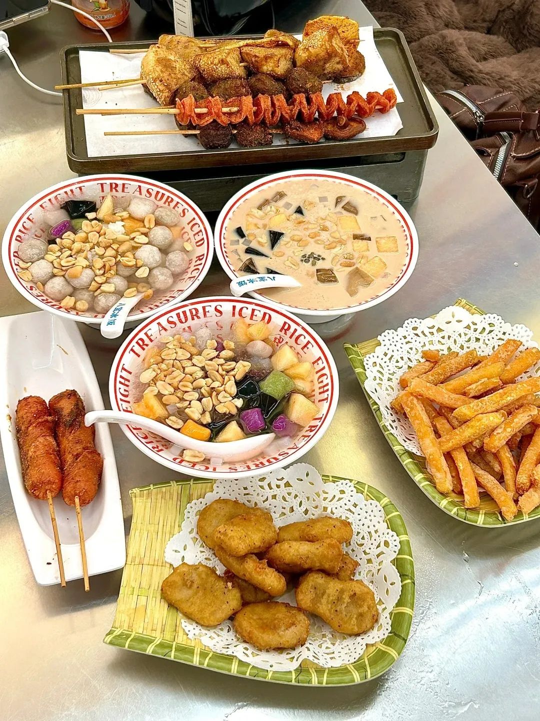 再尝尝香喷喷的炸串,满嘴巴的快乐。