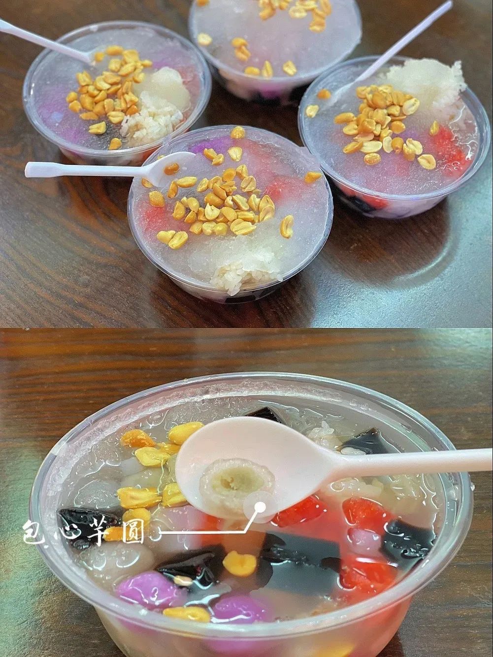 吃之前搅拌搅拌,让所有配料分布均匀,软糯的芋圆、爽滑的仙草、甜蜜的红豆、Q弹的糯米,一勺就是多重口感的叠加。
