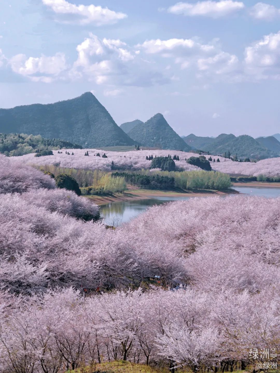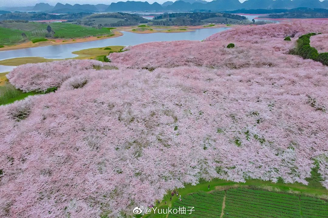 每年三月中下旬,贵州平坝就会迎来万亩樱花盛放期,漫山遍野的粉色花海。奔跑在樱花海洋,随处可见樱花雨,尽享铺天盖地的香甜与浪漫。