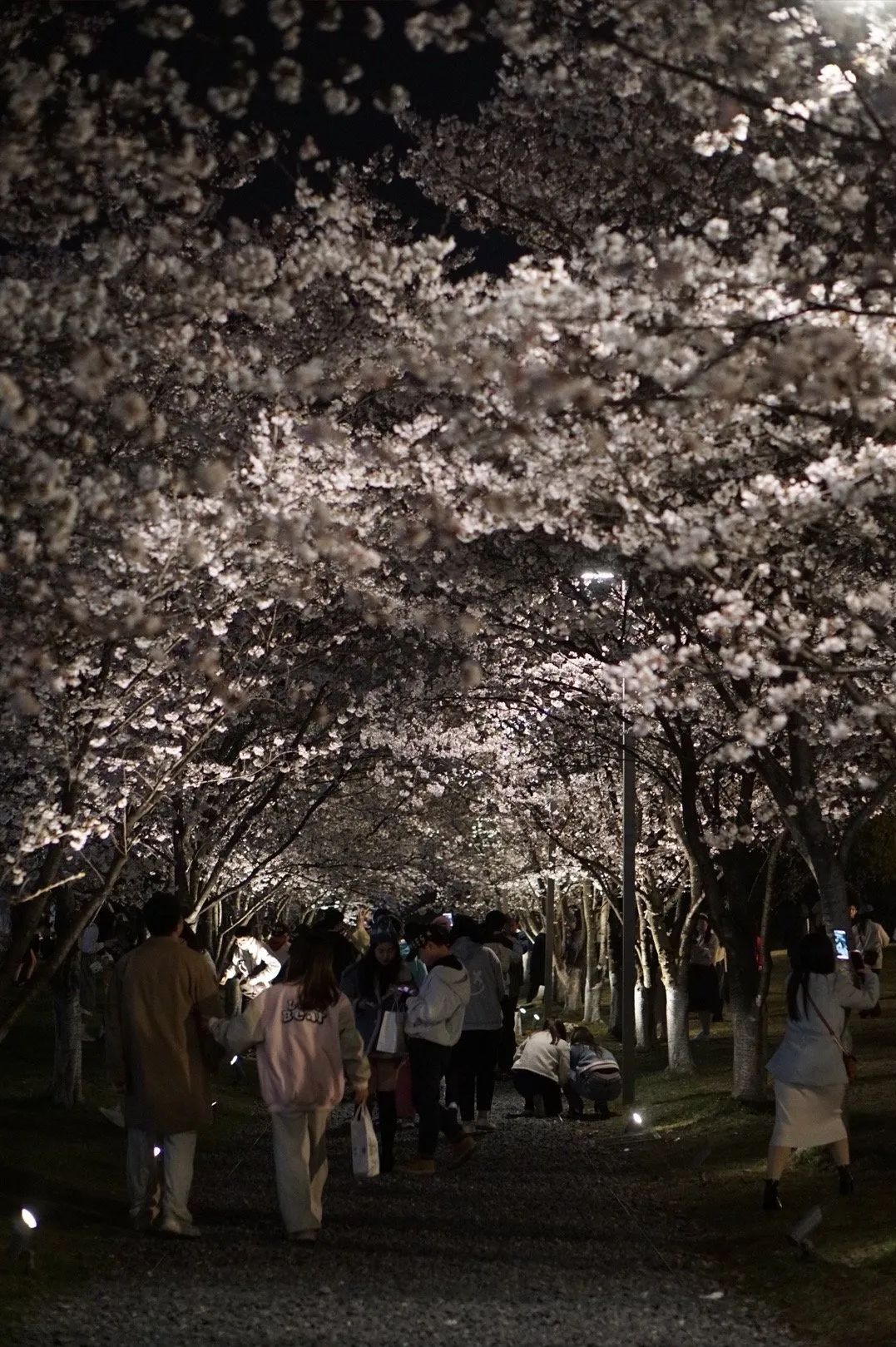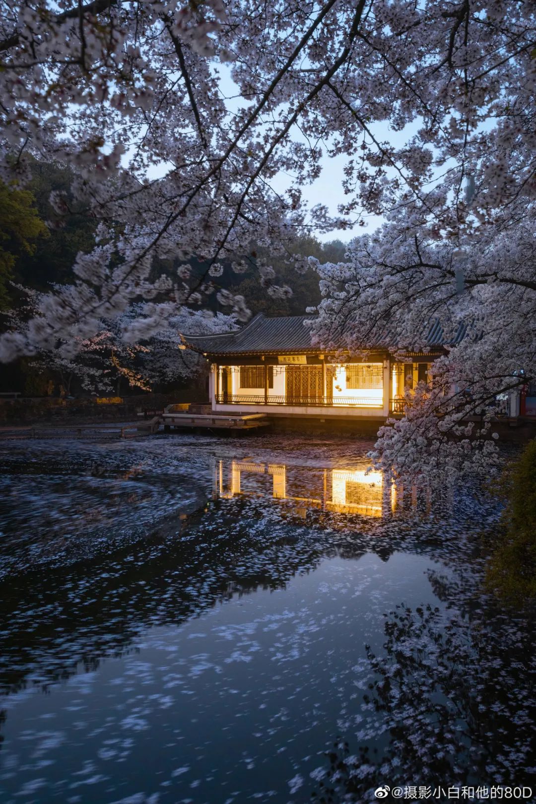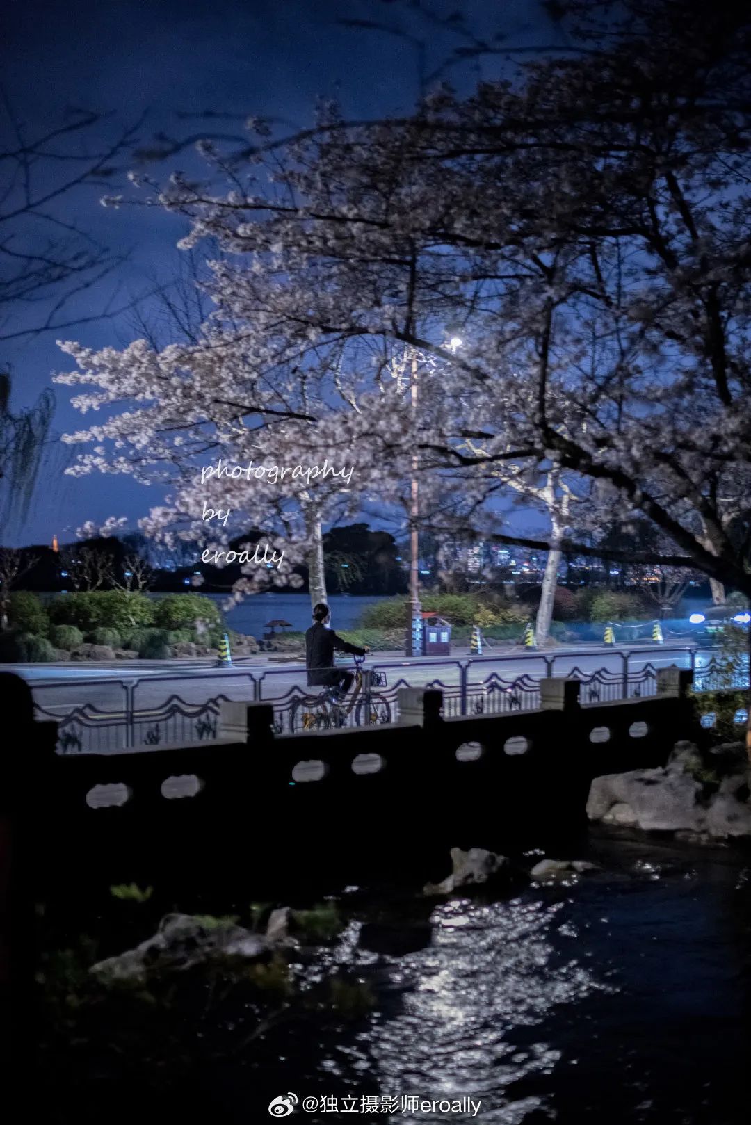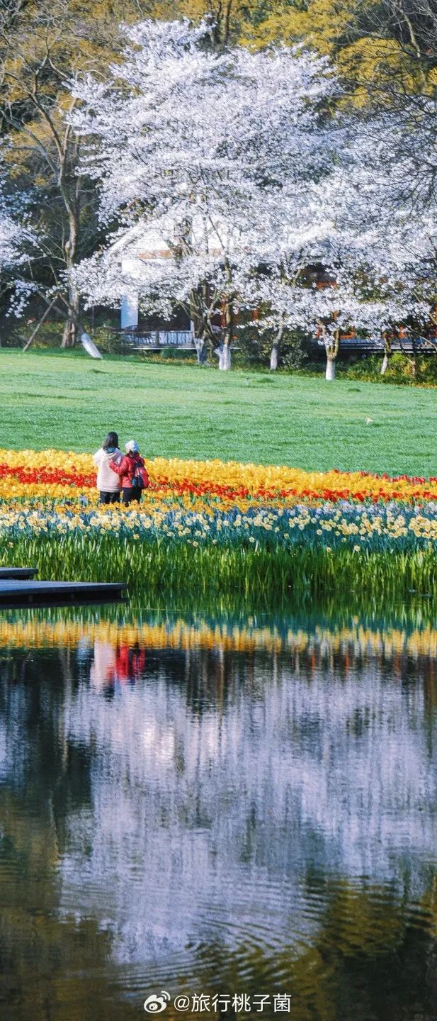 西湖附近有许多赏樱好去处,太子湾能拍到郁金香与樱花同框,曲院风荷是拍樱花的顶流之地,还有小众秘境的乌龟潭可以赏晚樱等等;良渚四歌樱花园适合拍人像,大屋顶有着100多株染井吉野樱分列两排形成的樱花小径,拍夜樱很好看~