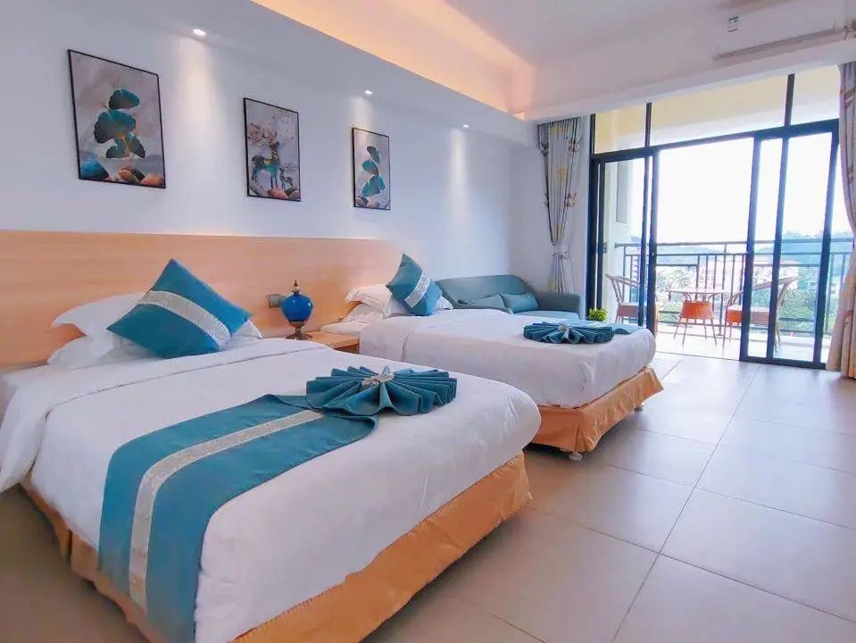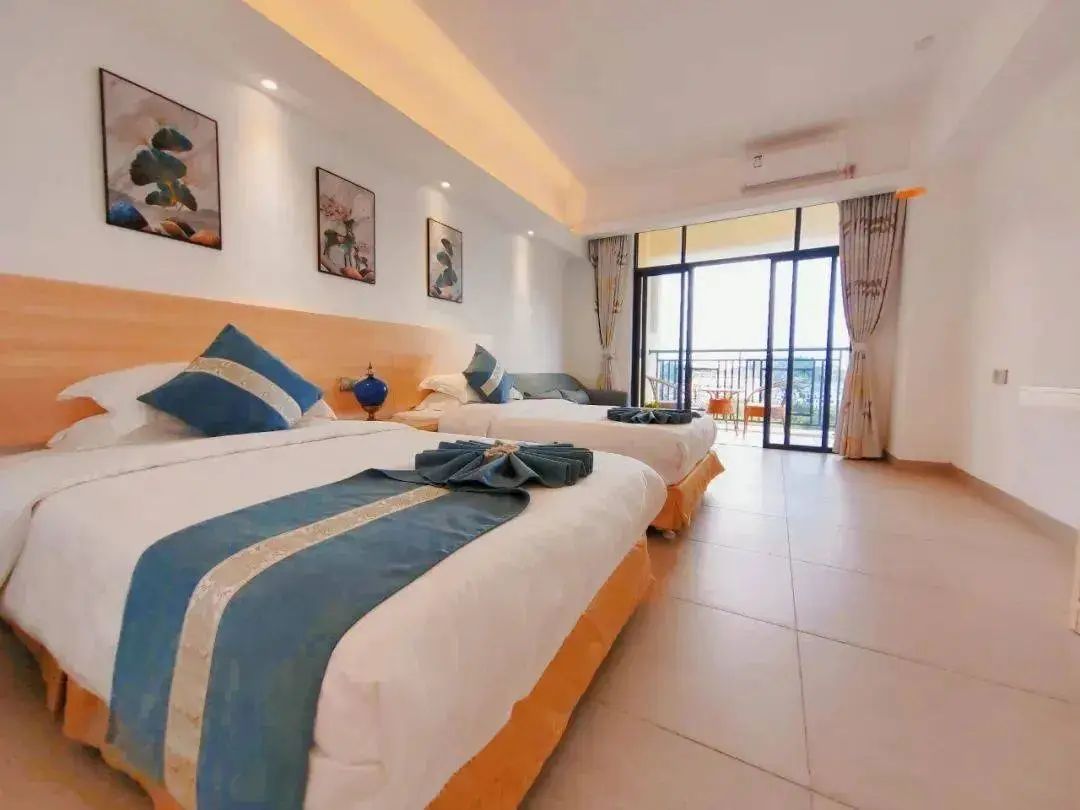 2、房型介绍:酒店畔山高级双床房/映泉景观双床房为2张1.2米单人床,酒店天台自带11个网红梦幻温泉泡池,可无限次畅玩,楼顶泳池暂不开放,敬请谅解