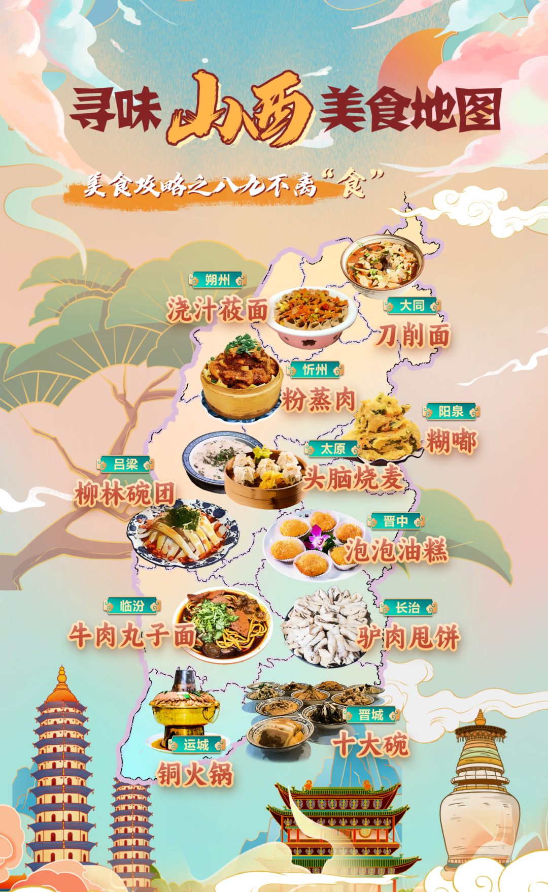 太原头脑:太原小吃“头脑”又名“八珍汤”,是由黄芪、煨面、莲菜、羊肉、长山药、黄酒、酒糟、羊尾油配制而成的一种粥状小吃。