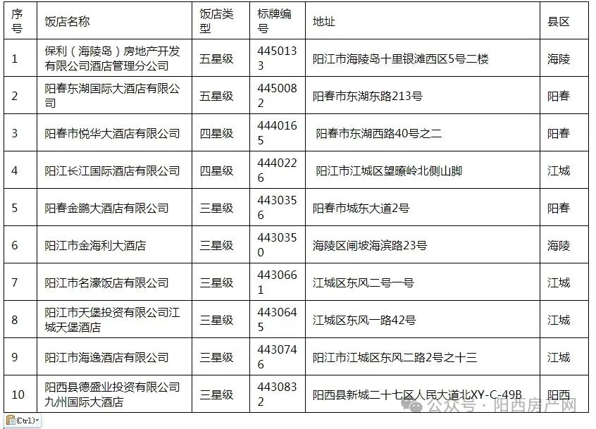 阳江市2023年星级旅游饭店名录公布,看看有哪些大咖?阳西有一间