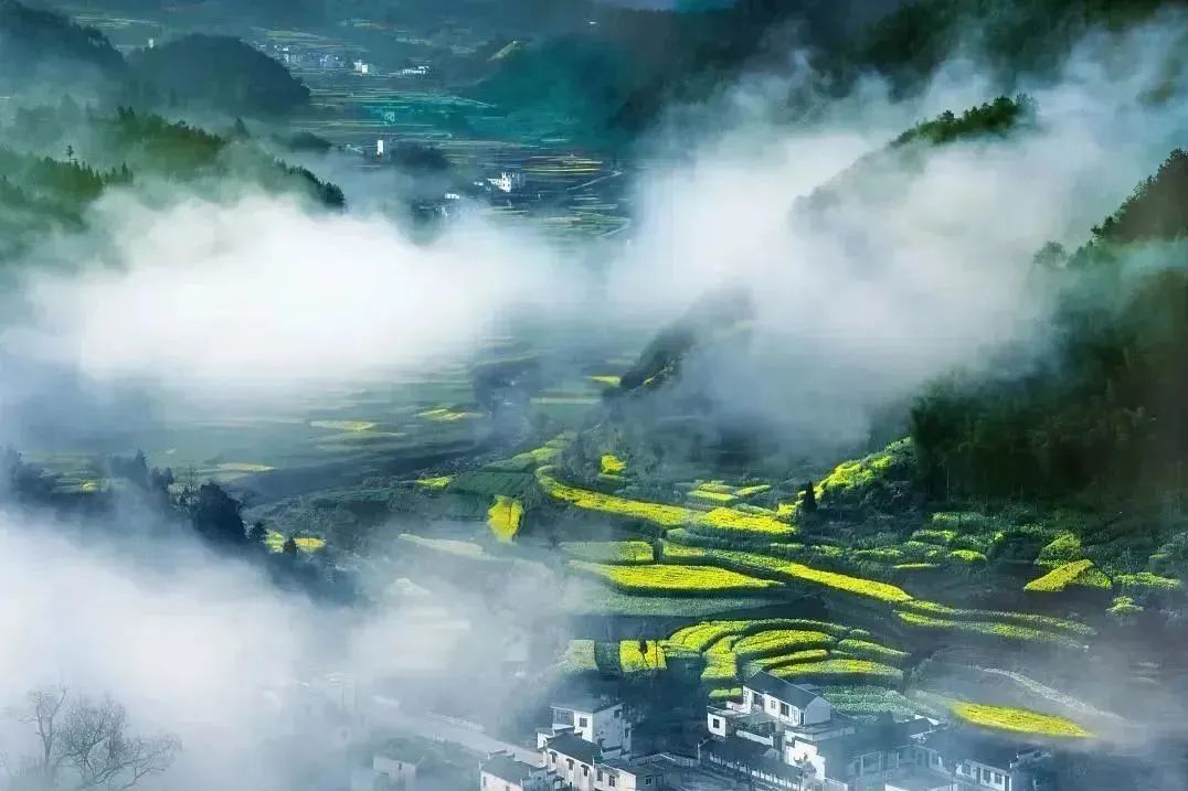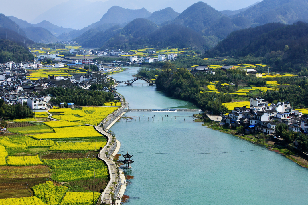皖南的山间,散落着风景如画的山村,如同一颗颗耀眼的明珠。地处高山的石潭,有着诗情画意的村边水口景观、淡雅明快的建筑色调。铺展在田间旷野的油菜花,清新自然、明媚动人。