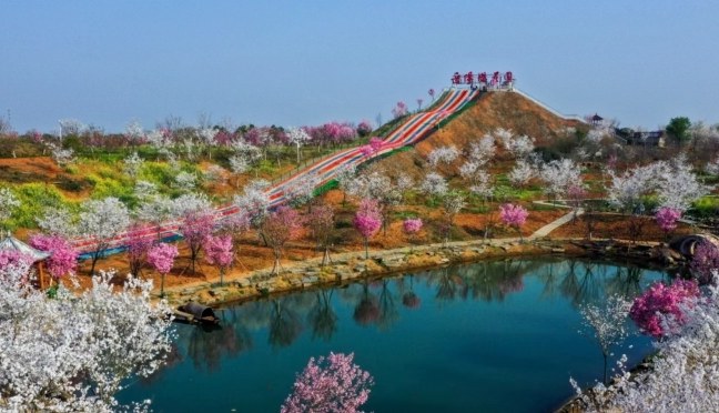 桃花园汇聚了花瓣似菊的“菊花桃”、一树红白花色同放的“红白花桃”、观赏食用并举的“迎春”、可食用的“金花露”、“晚蟠桃”等品种。