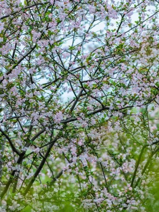 武汉植物园内,汇集有贴梗海棠、美国海棠、西府海棠、垂丝海棠、露易莎等25个品种,花朵绽放之时,如霞似锦,春意盎然。