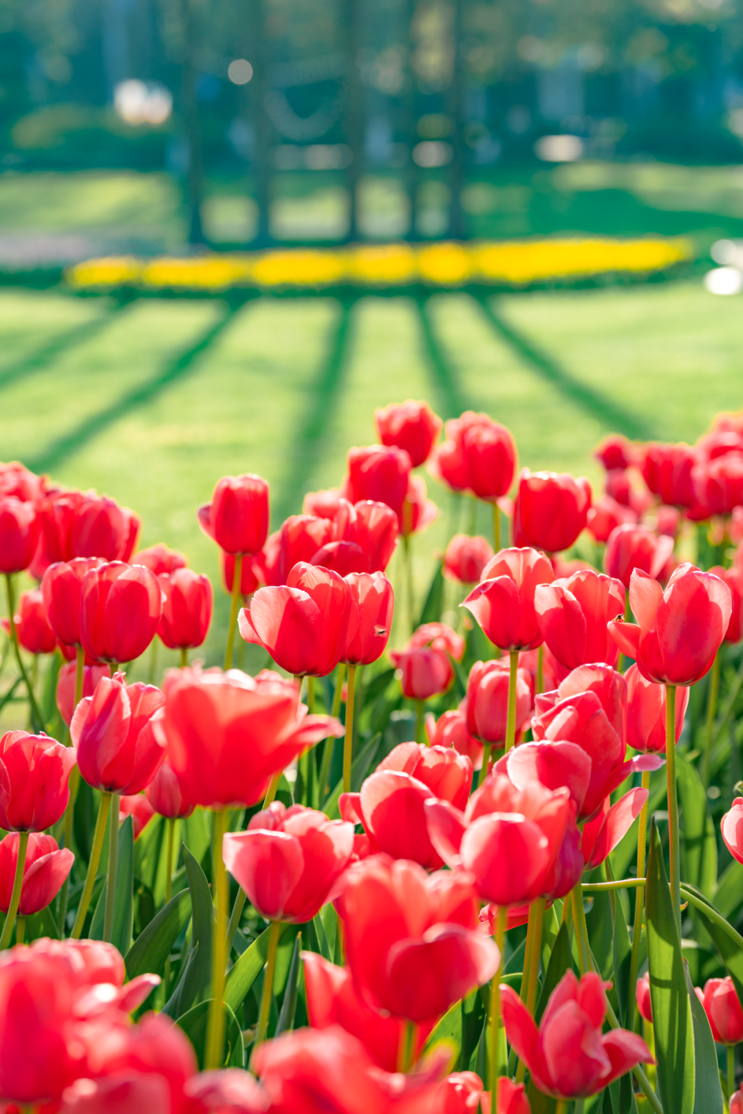 高大的乔木、流动的湖水、树荫、绿径、草坪与花团锦簇的郁金香交相辉映,营造更加生态更加自然的观感,打造色彩与梦幻交织的春日花园。
