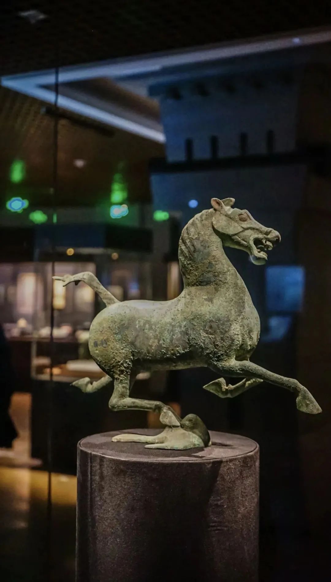甘肃省博物馆,位于甘肃省兰州市,平面呈“山”字形,中间五层、两翼三层,是一座智能化综合性博物馆。甘肃省博物馆汇集了甘肃从远古时期到近现代的珍贵文化遗存,馆藏珍贵历史文物、自然标本八万余(组),尤以新石器时代之冠的甘肃彩陶、汉代简牍文书、汉唐丝绸之路珍品、佛教艺术萃宝、古生物化石等珍贵文物为特色。最负盛名的是:马踏飞燕与莲花形玻璃托盏。