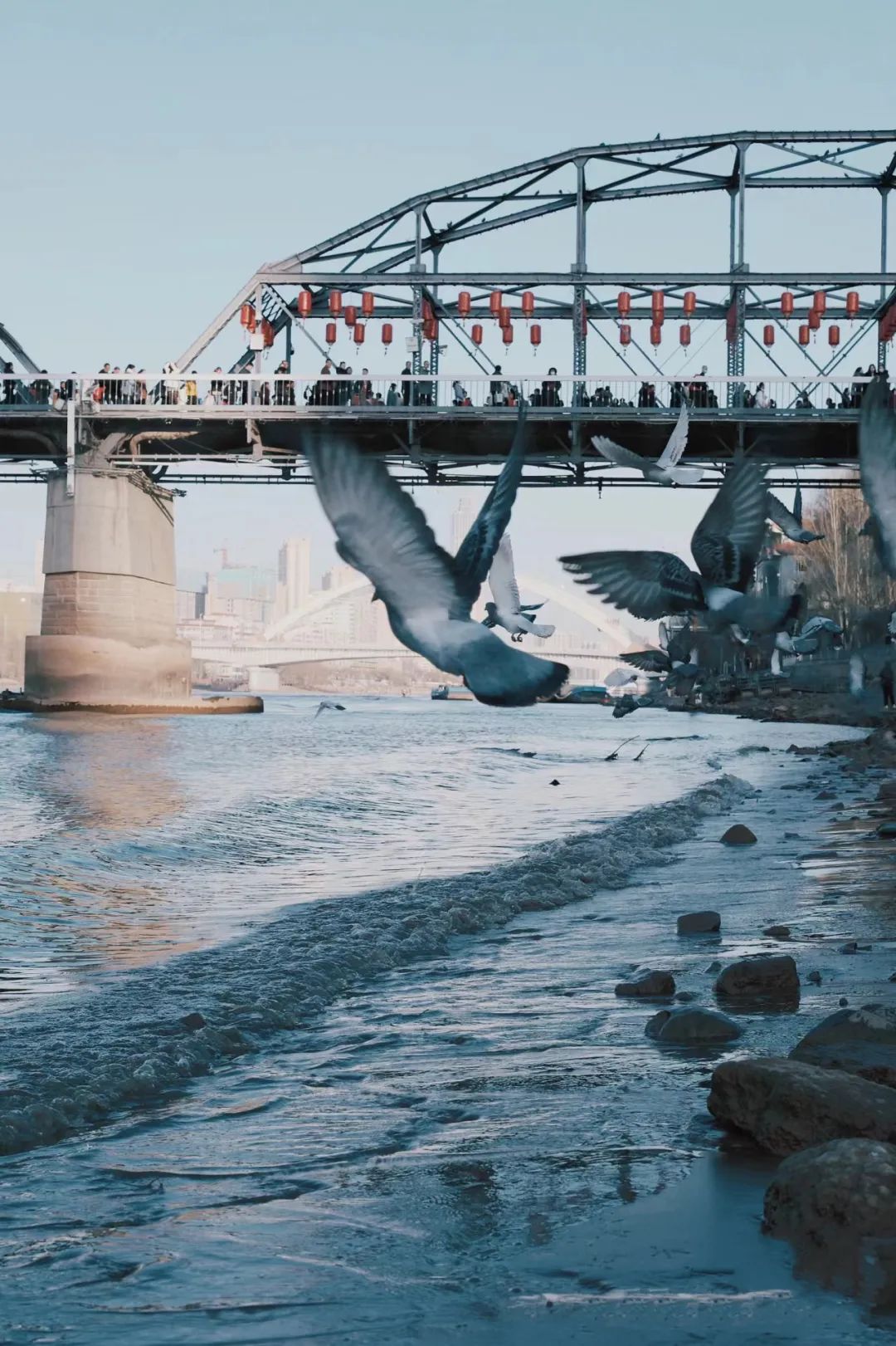 冬季,黄河水变得清澈,这时候的黄河水看上去湛蓝,是属于兰州黄河边独有的冬季浪漫。