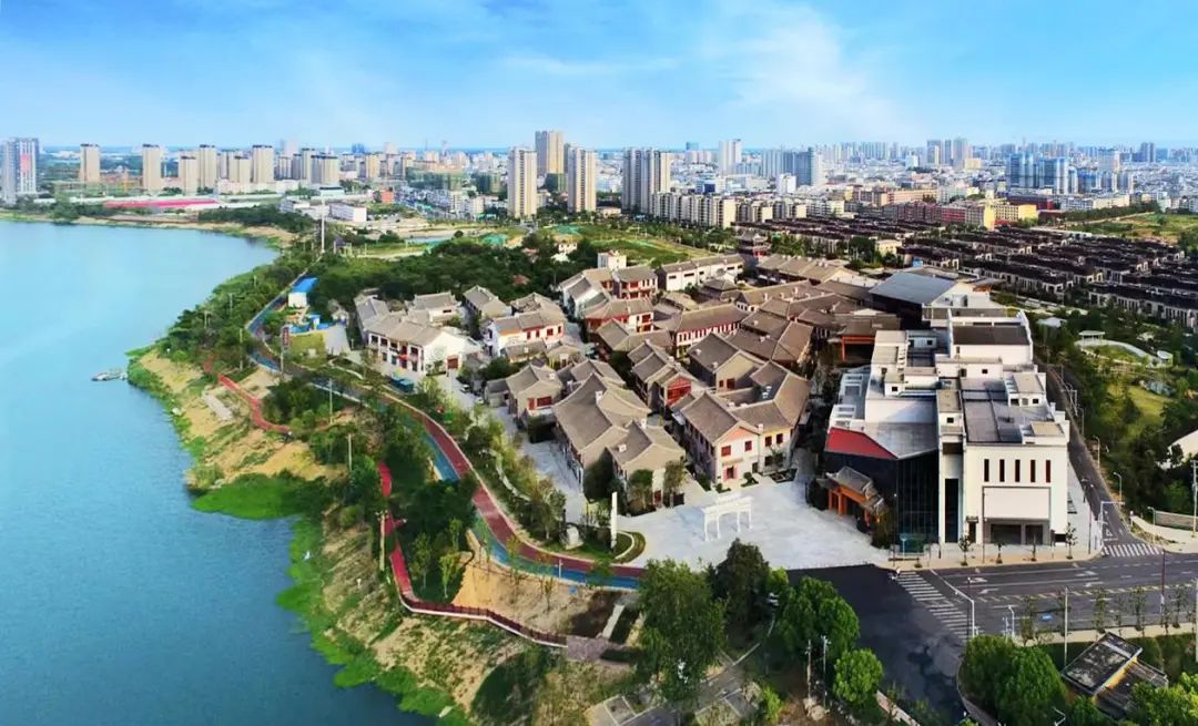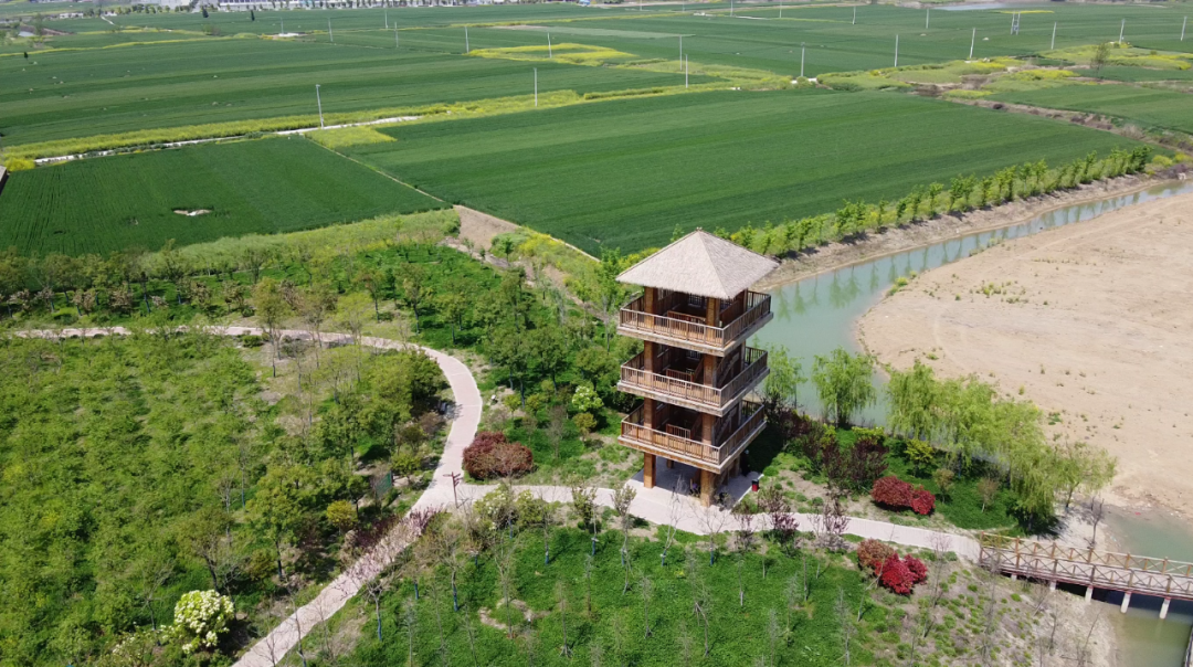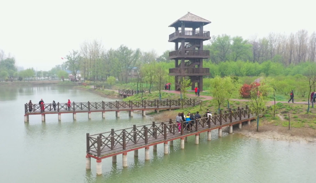 从空中俯瞰临泉戴桥鹭鸟洲湿地公园