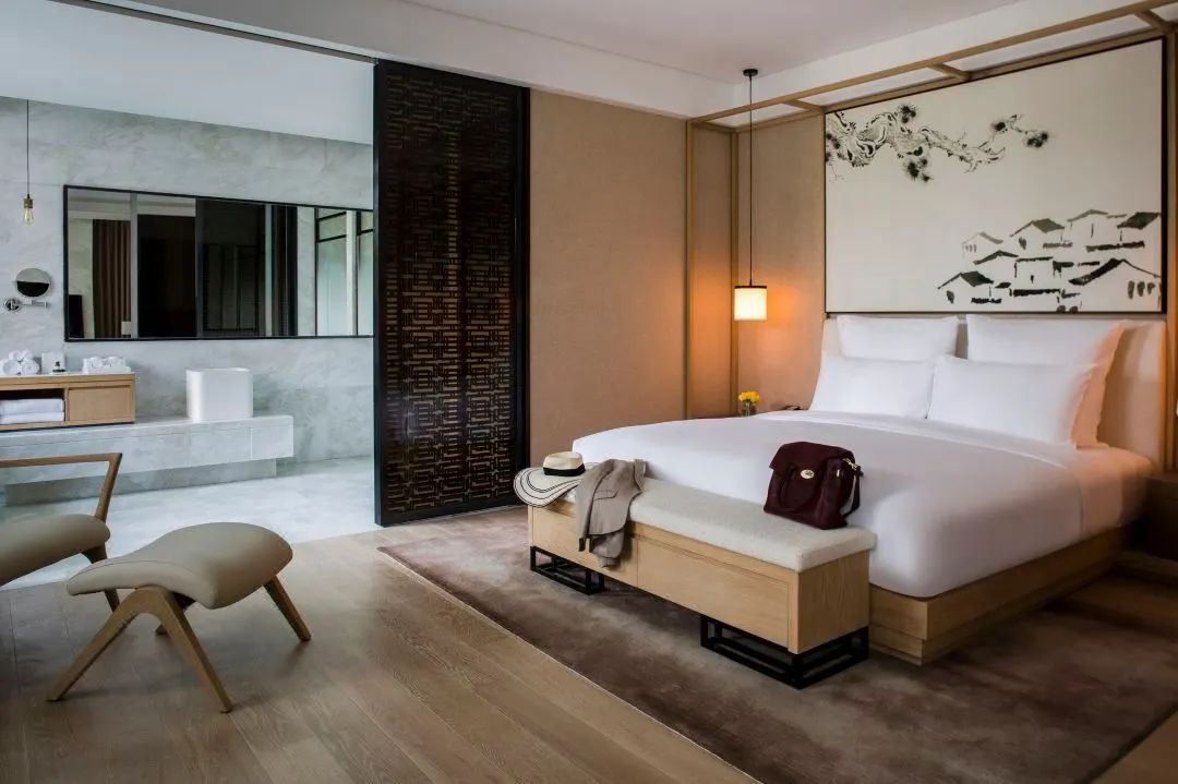 酒店内共有173间客房,间间设有阳台,可一览湖景、园林的美景。酒店客房宽敞,房间面积45㎡起,内部装潢清新简约,融入江南水乡的壁画装饰,一派水墨江南的风韵映入眼帘。卫生间干湿分离,配备铂尔曼专用的、来自美国的C.O. BIGELOW洗浴用品。若是亲子家庭入住,前台还会提供儿童毛巾、儿童牙刷、牙膏等。