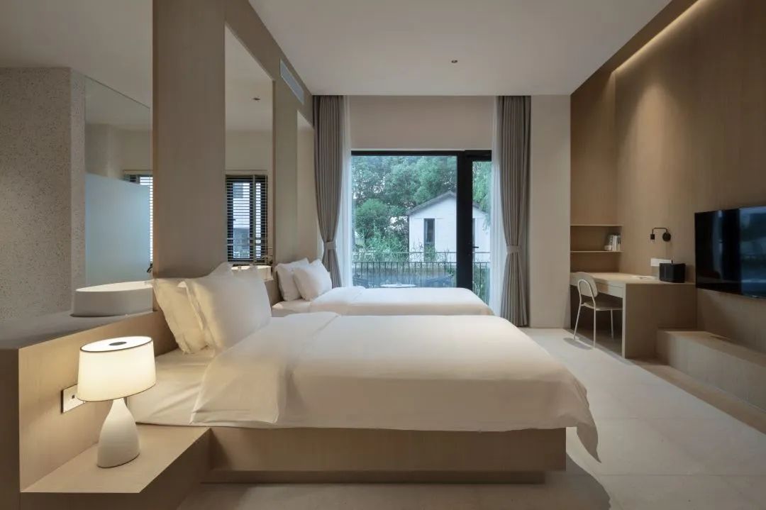 江南·半舍的设计理念源于日本著名建筑师青山周平之手,他将现代简约风格与文艺清新气息完美融合,同时不失江南水乡的传统韵味。整个民宿的建筑风格独特,既展现了现代设计的创新理念,又保留了江南水乡的古朴风情,为都市丽人们打造了一个充满文艺气息和轻奢质感的乡村之家。