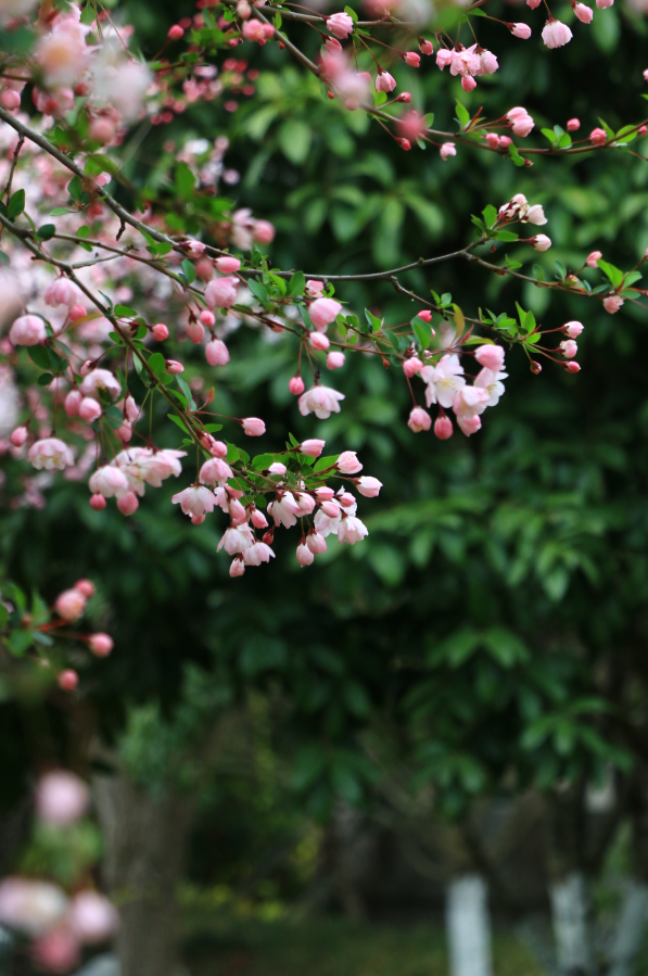 海棠花开,不负春光不负卿。一朵海棠露春芳,一树海棠春满堂。