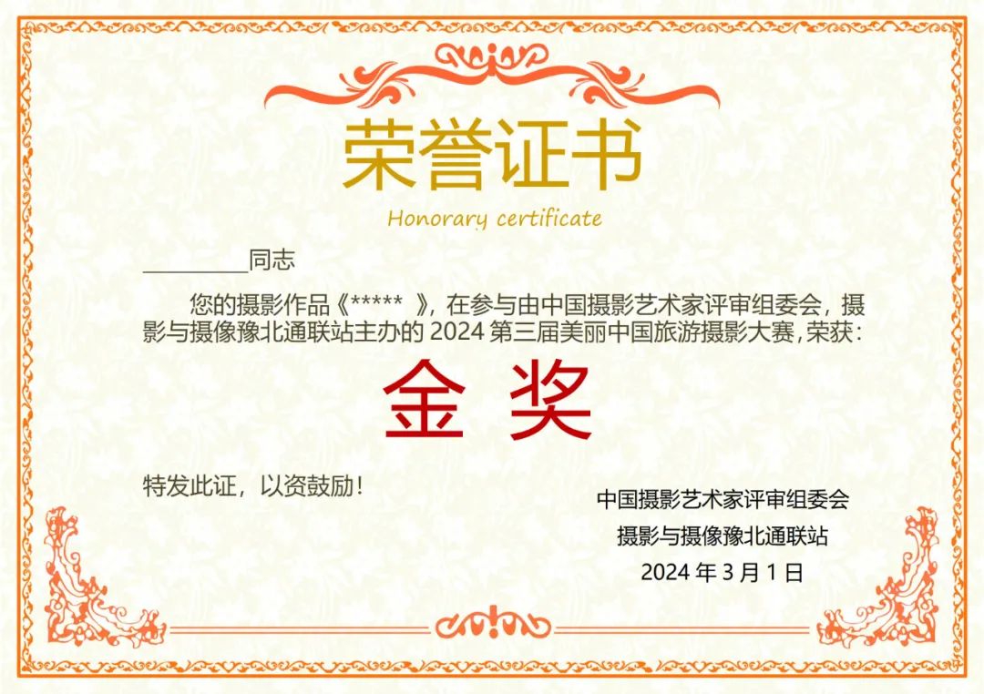 7、对于投稿作品,择优入选,获奖作者将收到”第三届美丽中国旅游摄影大赛”的获奖通知书,作者有权选择是否参与活动;(注:因大赛服务、媒体宣传、奖杯、荣誉证书定制等成本,主办单位向获奖作者收取相应的服务费用。)