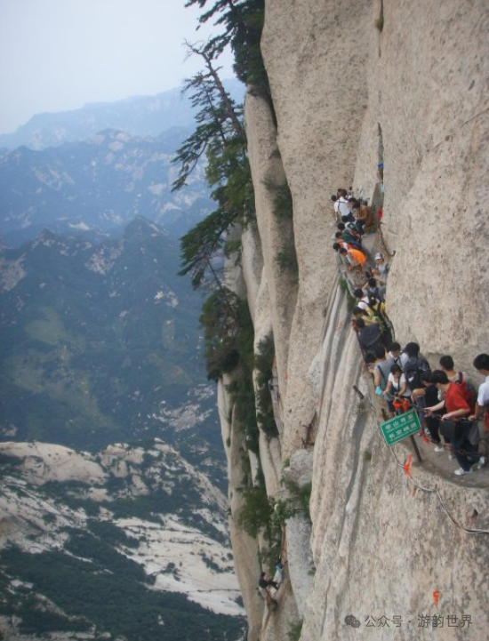 最后,我们来到华山,这是中国五岳之一,华山鹞子翻身是其中最著名的景点之一。全程只能面向石壁用脚尖探寻石窝向下爬,每一步都充满着惊险与刺激。春季时山间空气清新,美丽的花朵和绿草如茵的景象令人心旷神怡,站在峭壁边缘,欣赏山谷的美景和悬崖峭壁,感受大自然的神奇与力量。