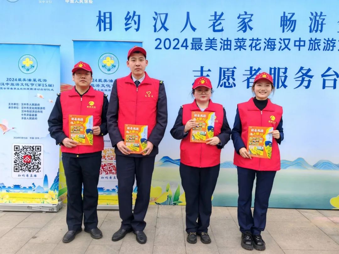 在油菜花海主会场,设置了文明实践志愿服务旅游“驿站”,主动走入公众生活、对接美好需求,切实擦亮“陕西交控服务窗口”。驿站配备了饮用水、最美油菜花海汉中旅游文化节交通示意图、精品观花点示意图等物品,免费为游客提供。在开幕式演出会场,青年志愿者们身穿红色马甲,精神饱满、热情洋溢,主动为过往游客发放宣传单页、精品观花点示意图及饮用水,提供暖心服务。累计为过往游客发放宣传单页200余份、精品观花点示意图200余份。
