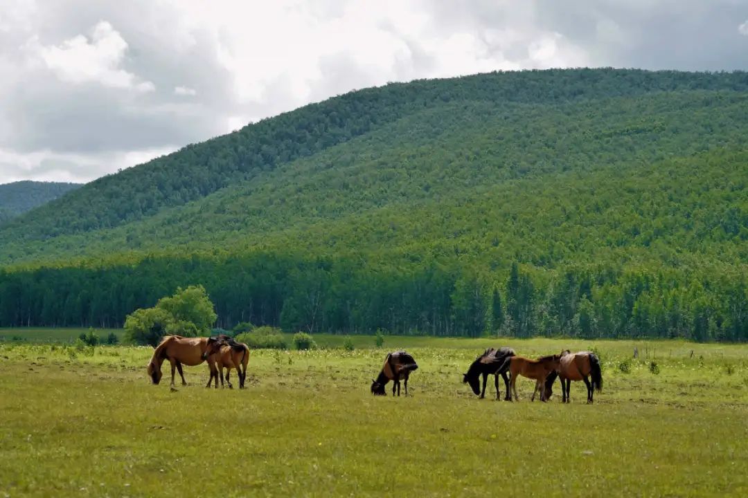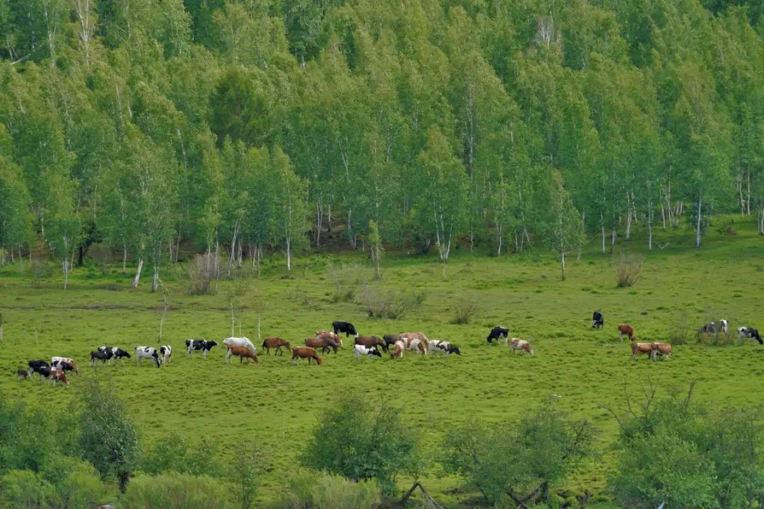 其一在恩和村你可以找个高处眺望,会发现这是一个坐落在山谷之间的村落,一条河流从村中缓缓流过,河的两侧是连绵的草地,山间和山谷是一排排的白桦林,特别有森系的感觉。