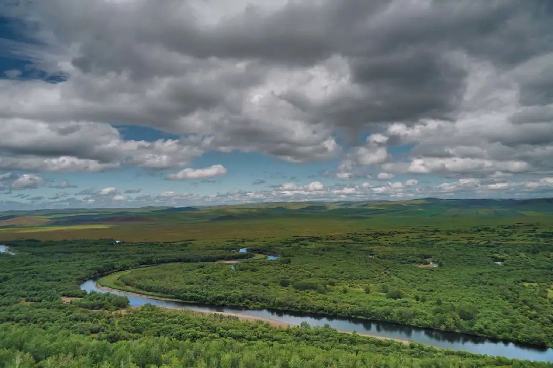除了建筑特色外,拉布大林城郊的额尔古纳湿地也非常值得一去,12.6万公顷的规模让它跃居“亚洲第一湿地”,找个高处你会看到绵延的根河从额尔古纳湿地中流淌而过,将两旁的树木灌溉的绿绿葱葱。