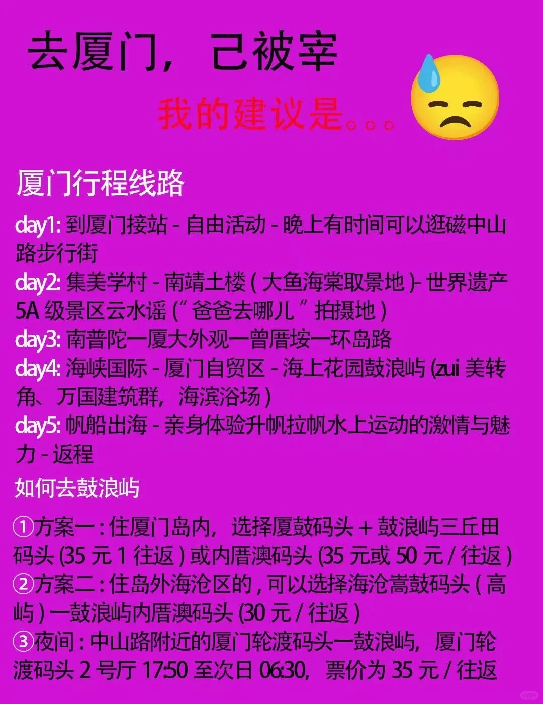 姐妹们!!在厦门旅游回来啦,给你们带来全新又完整的攻略,这篇笔记可以让你清清楚楚!🎉